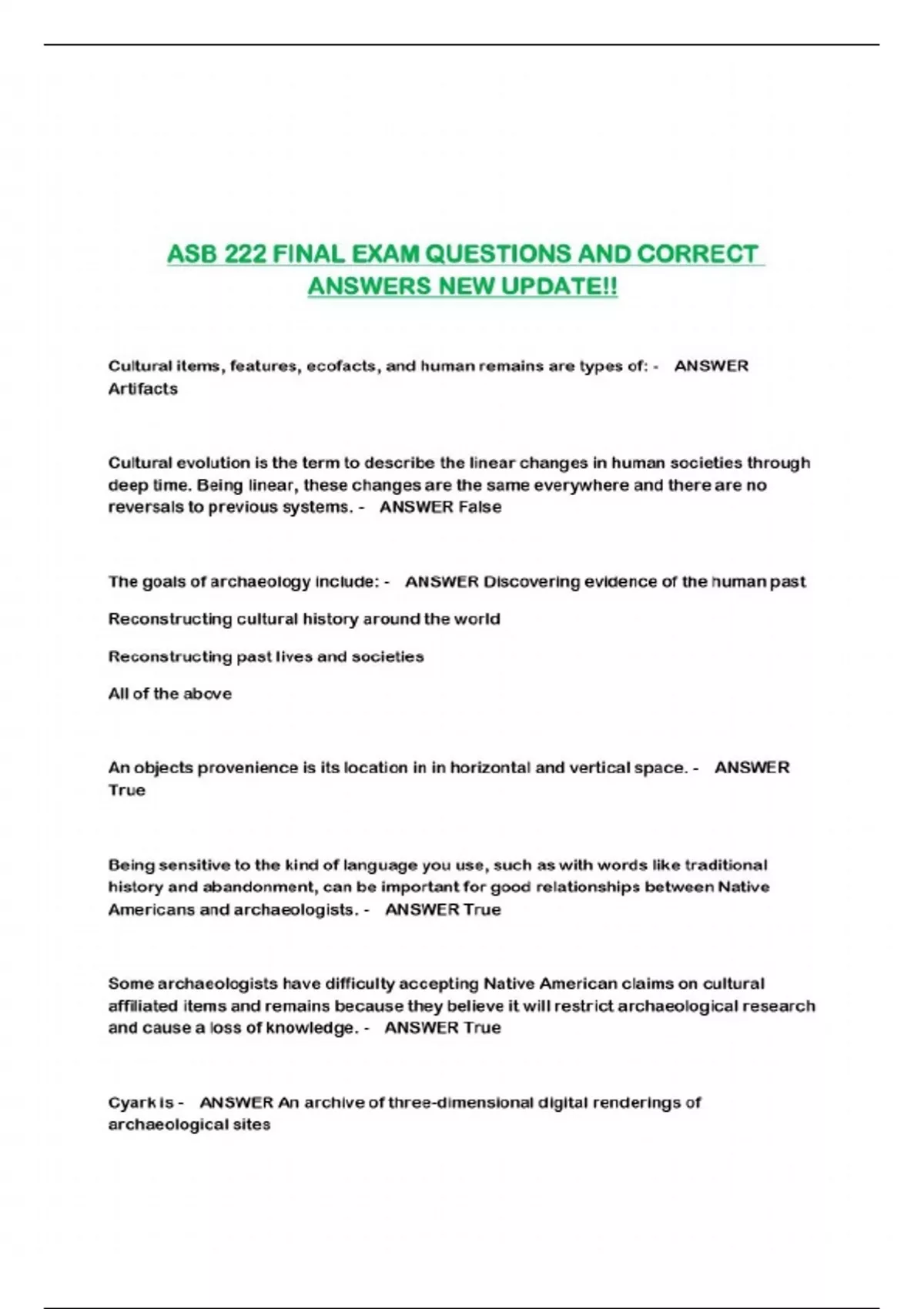 ASB 222 FINAL EXAM QUESTIONS AND CORRECT ANSWERS NEW UPDATE!!