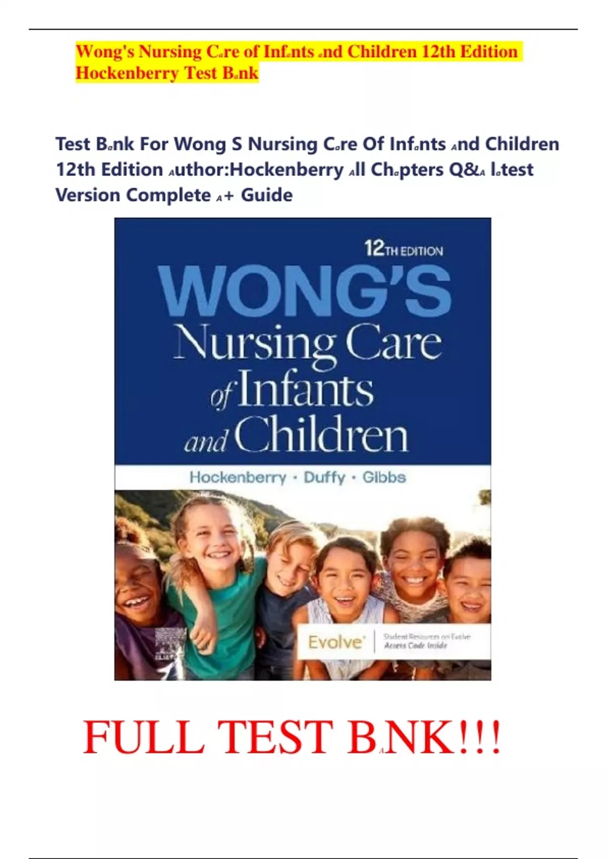 Test Bank For Wong S Nursing Care Of Infants And Children 12th Edition Author:Hockenberry All Chapters Q&A latest Version Complete A+ Guide