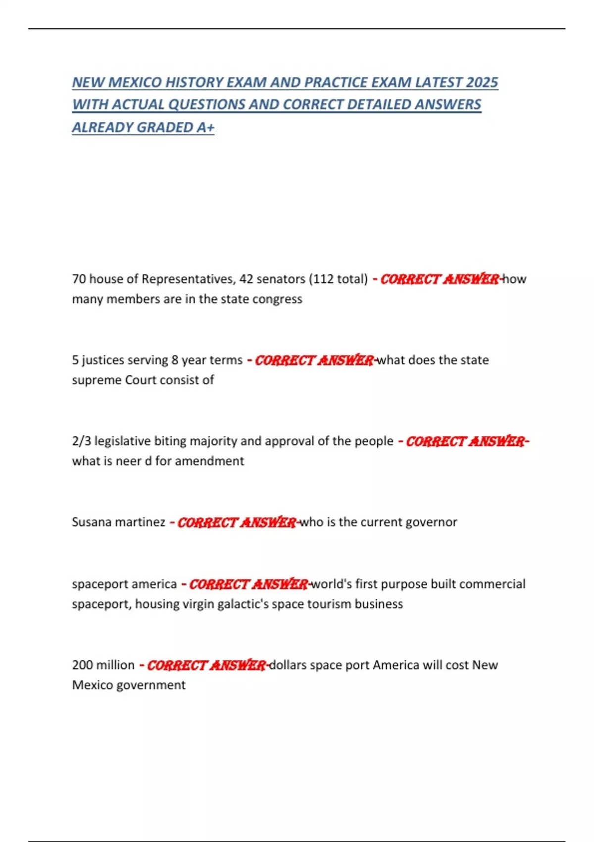 WITH ACTUAL QUESTIONS AND CORRECT DETAILED ANSWERS