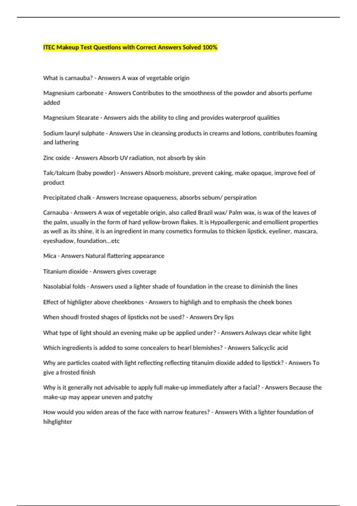 Precipitated chalk - Answers Increase opaqueness, absorbs sebum/ perspiration