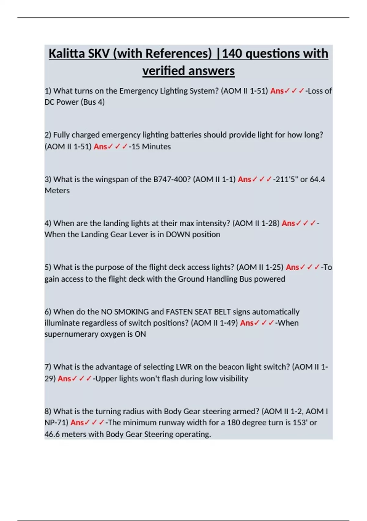 Kalitta SKV (with References) |140 questions with