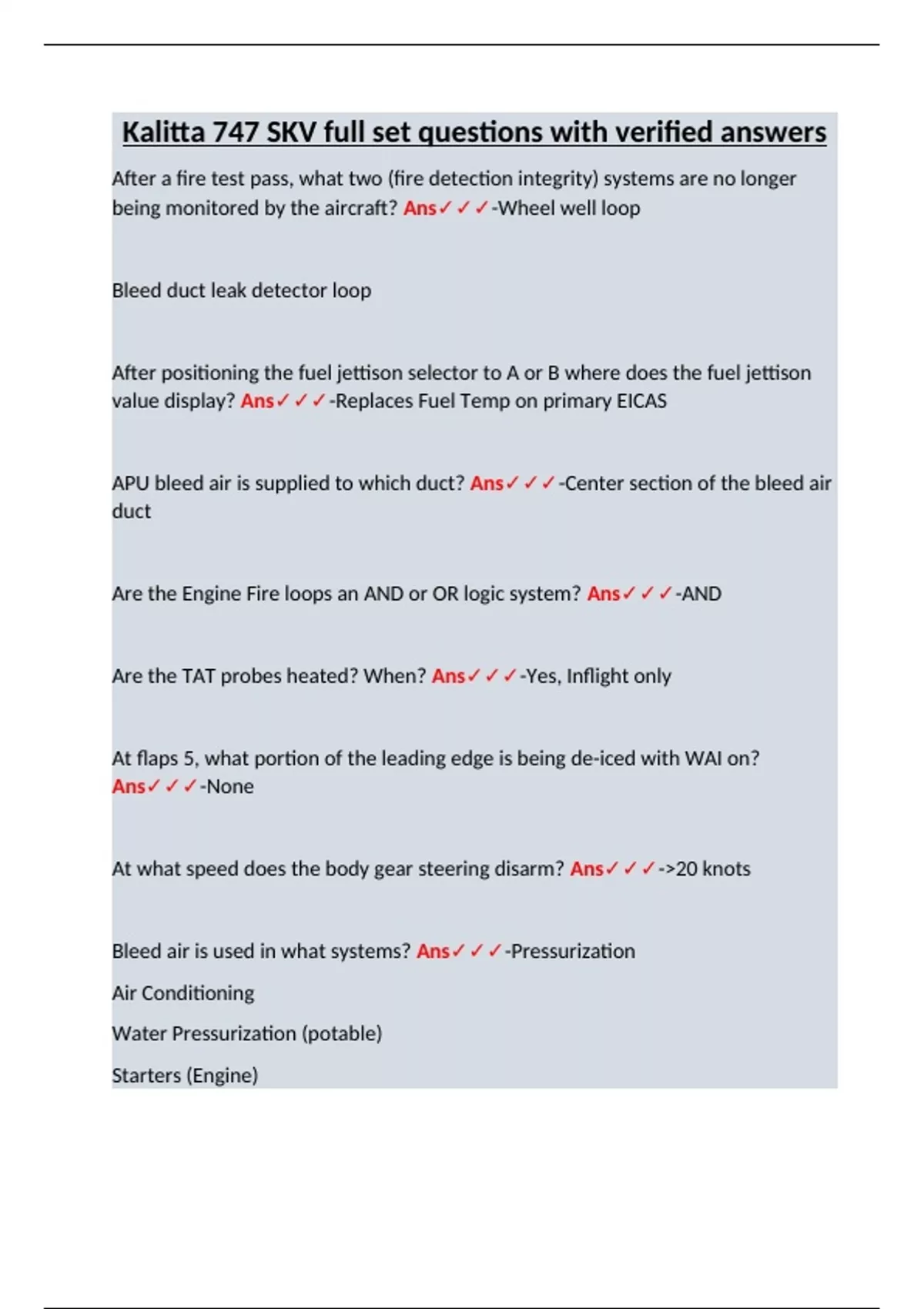 Bleed air is used in what systems? Ans✓✓✓-Pressurization