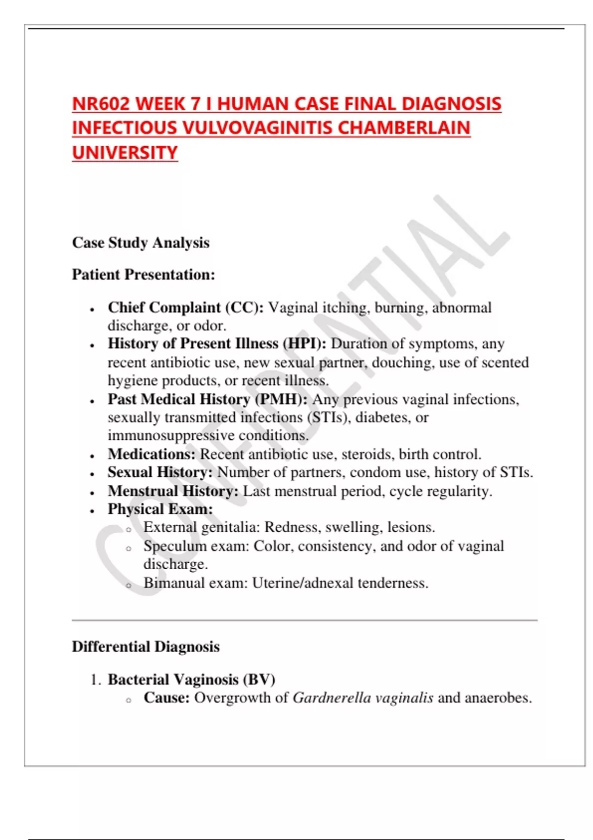 • Chief Complaint (CC): Vaginal itching, burning, abnormal