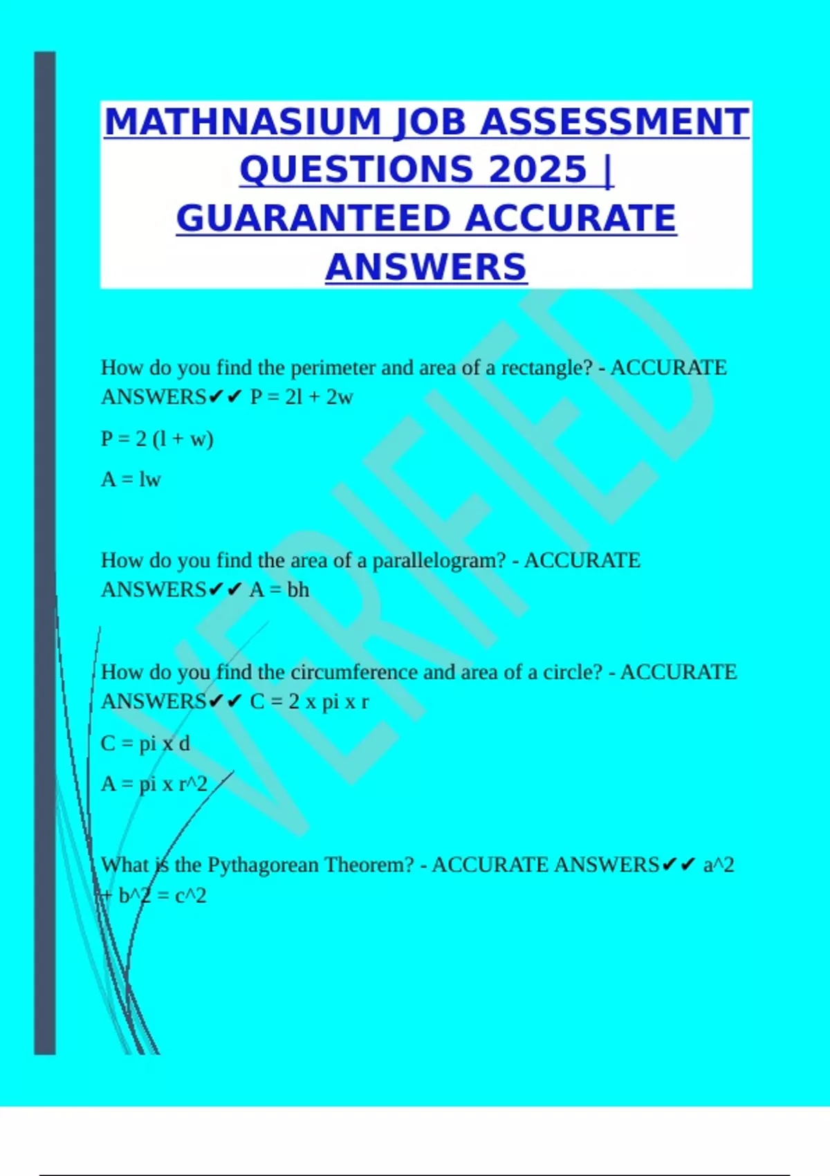 ACCURATE ANSWERS✔✔ V = lwh