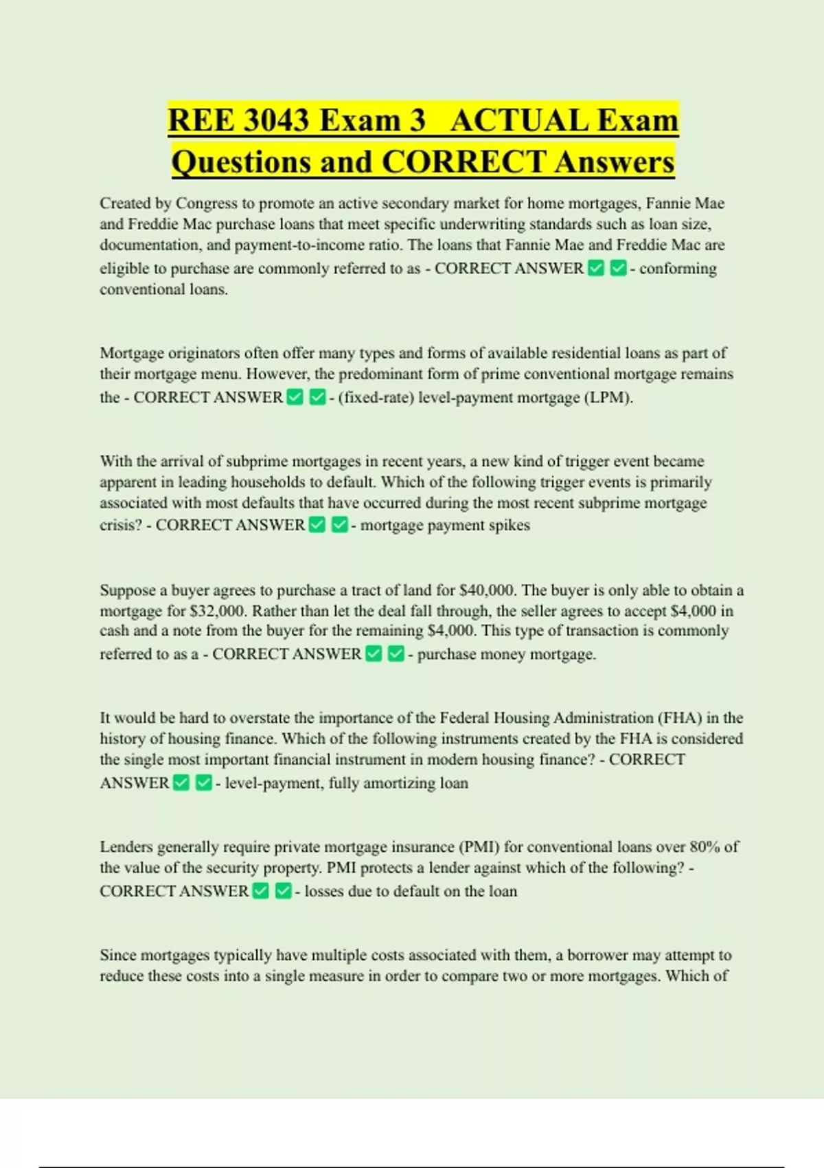 Questions and CORRECT Answers