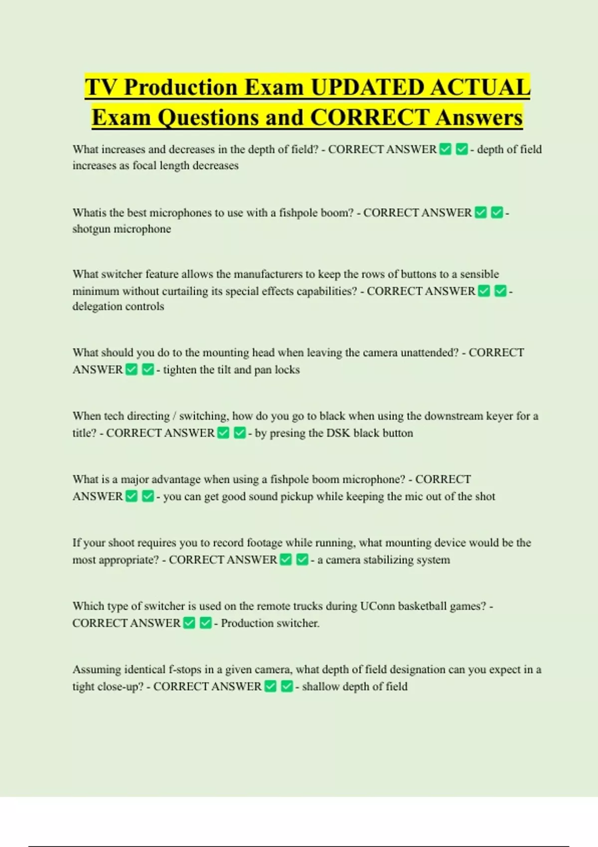 Exam Questions and CORRECT Answers