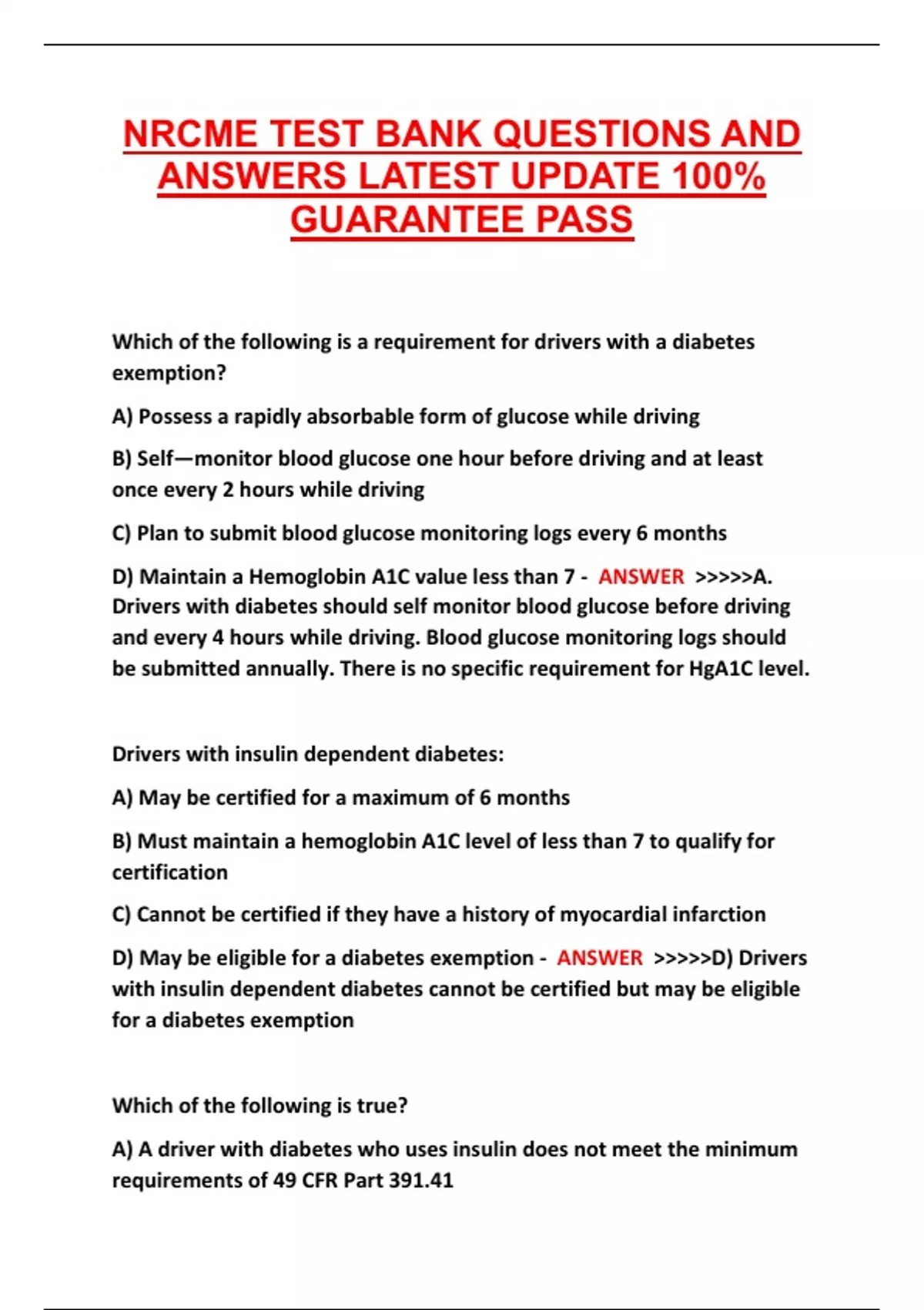 D) May be eligible for a diabetes exemption - ANSWER >>>>>D) Drivers