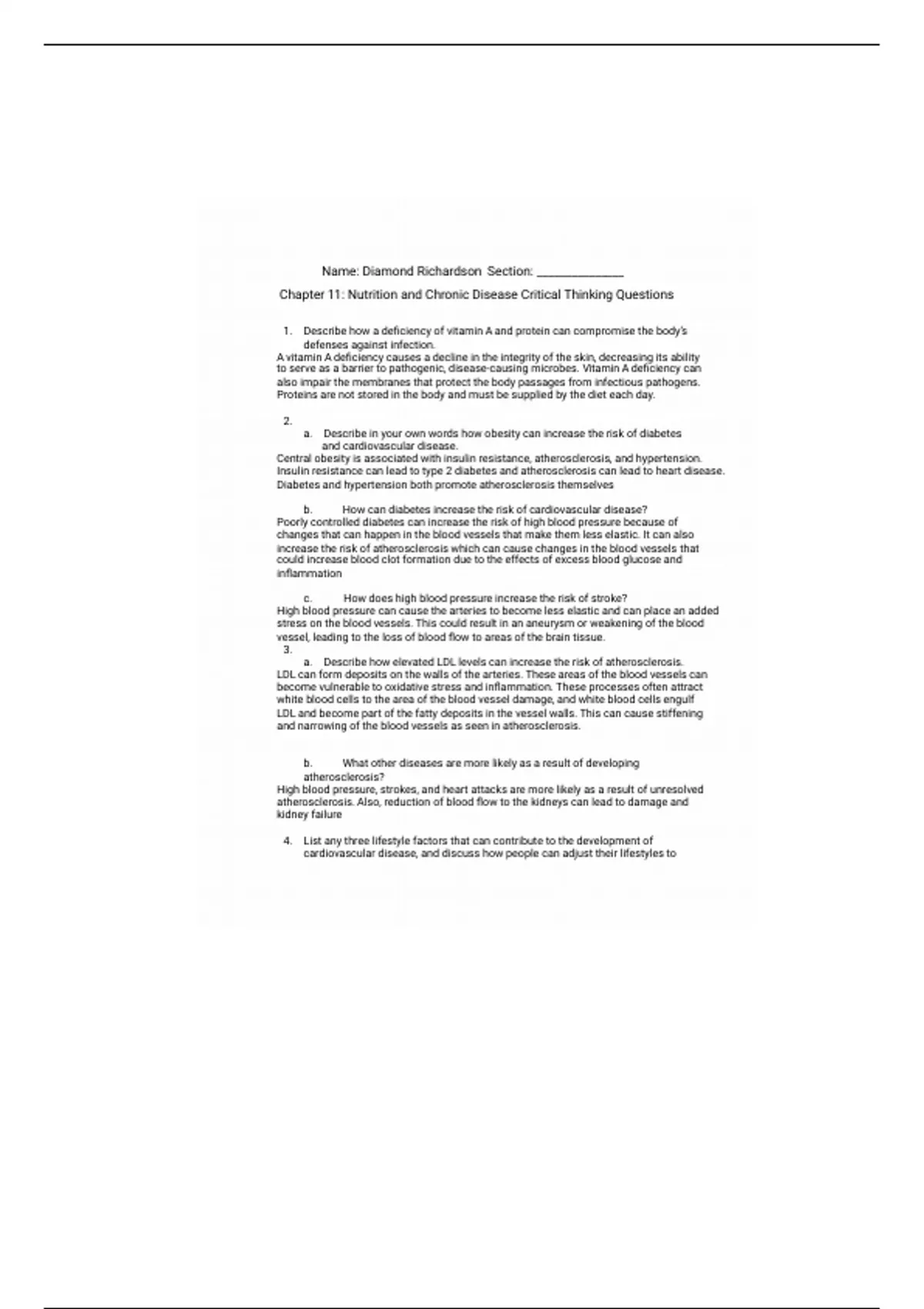 Chapter 11: Nutrition and Chronic Disease Critical Thinking Questions