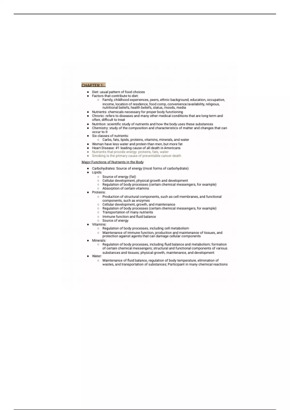 ● Nutrients: chemicals necessary for proper body functioning