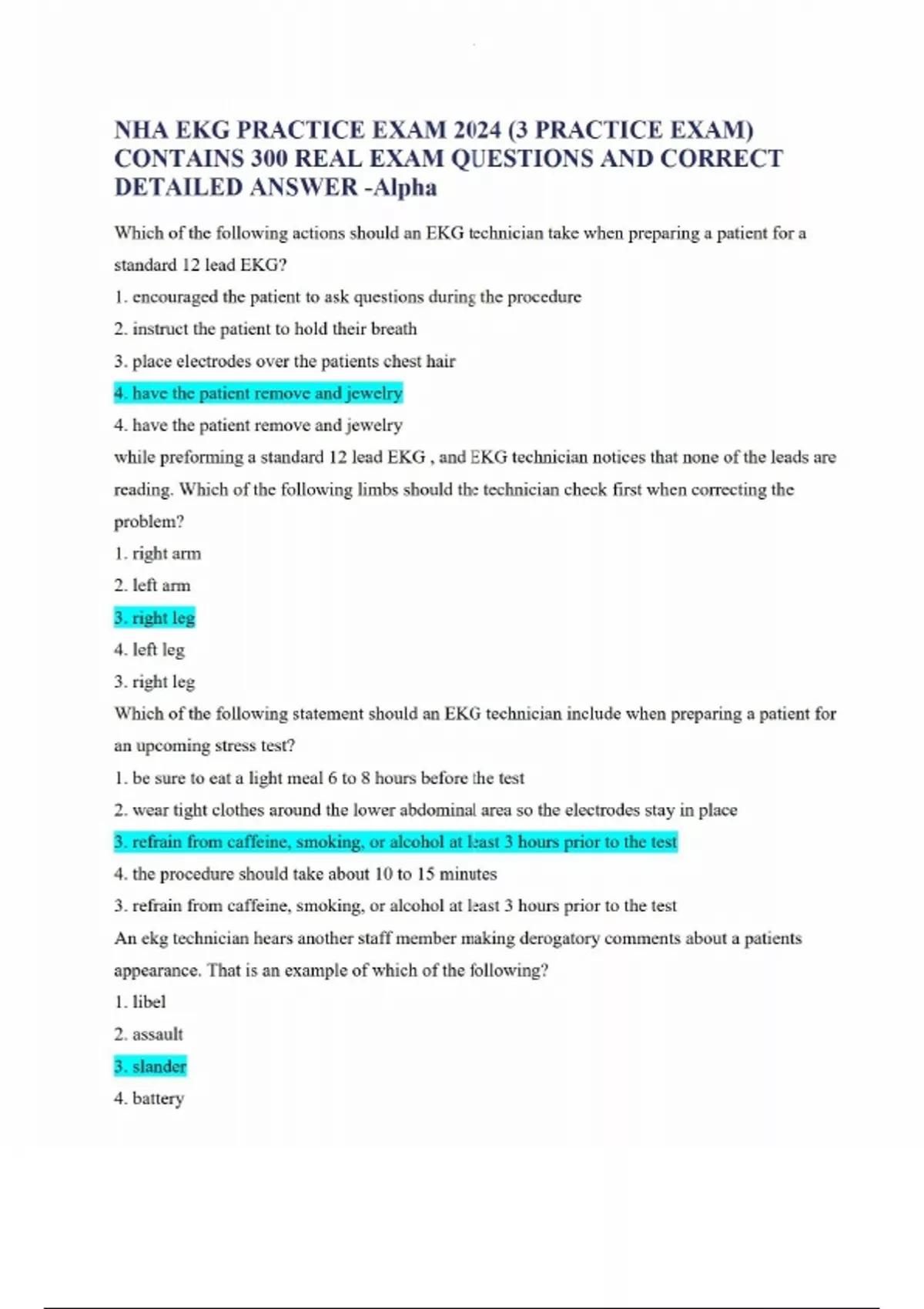 NHA EKG PRACTICE EXAM (3 PRACTICE EXAM) CONTAINS 300 REAL EXAM QUESTIONS AND CORRECT DETAILED ANSWERS (VERIFIED ANSWERS) |ALREADY GRADED A+