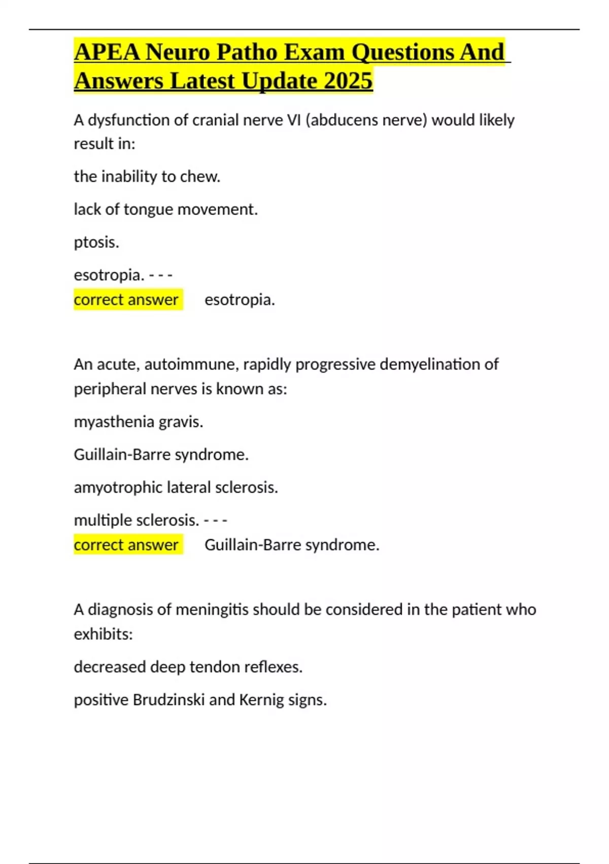 , APEA Neuro Patho Exam Questions And