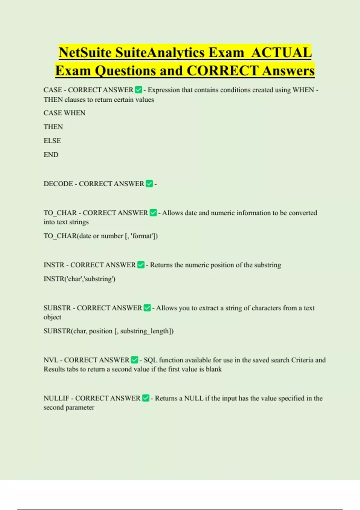 TO_CHAR - CORRECT ANSWER - Allows date and numeric information to be converted