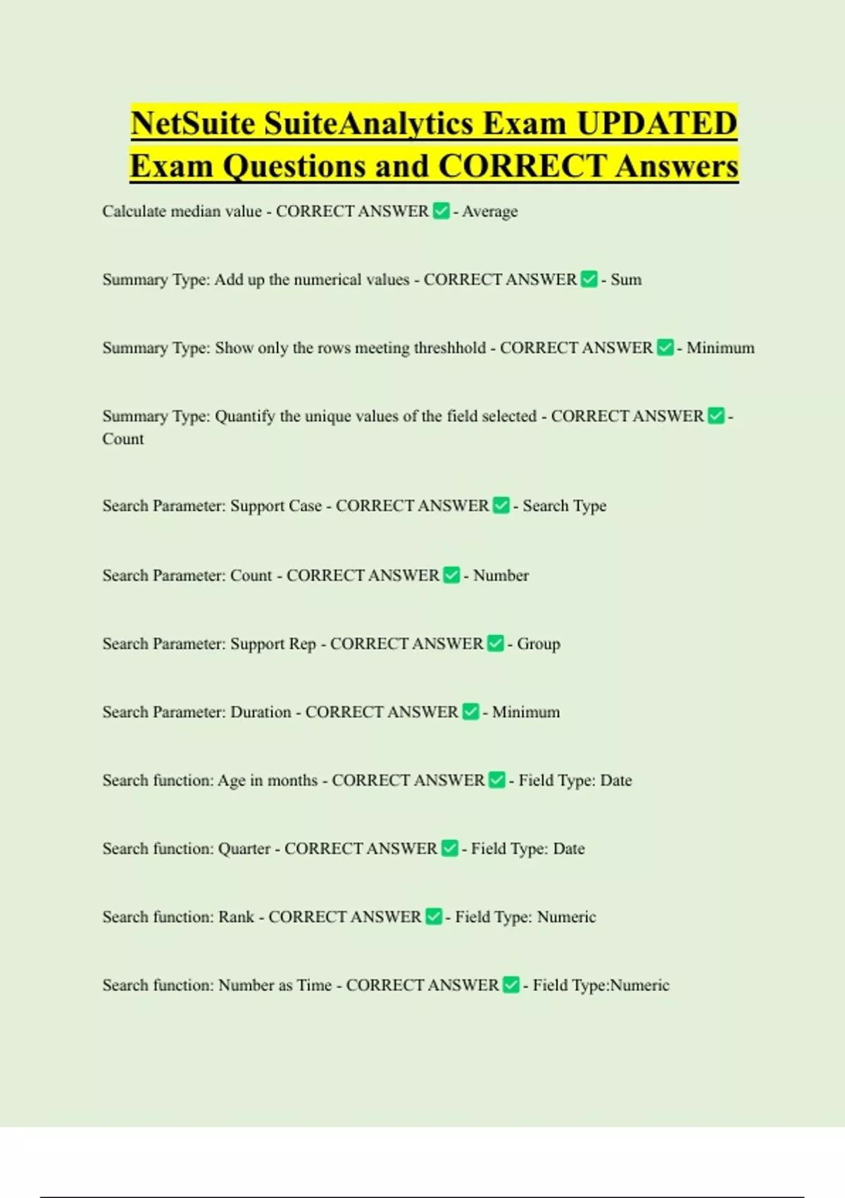 Summary Type: Add up the numerical values - CORRECT ANSWER - Sum