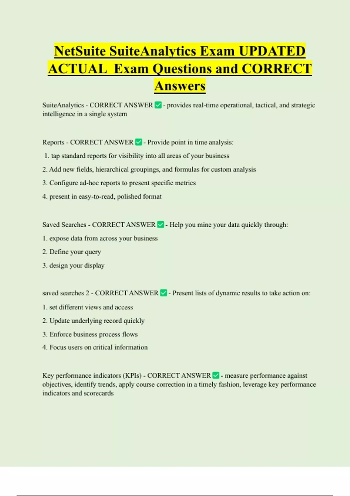 SuiteAnalytics - CORRECT ANSWER - provides real-time operational, tactical, and strategic