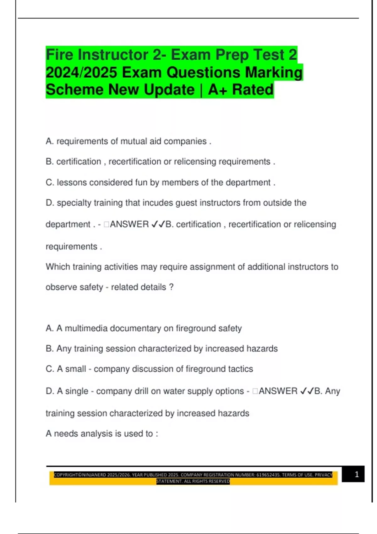 Fire Instructor 2- Exam Prep Test 2 2024/2025 Exam Questions Marking Scheme New Update | A+ Rated