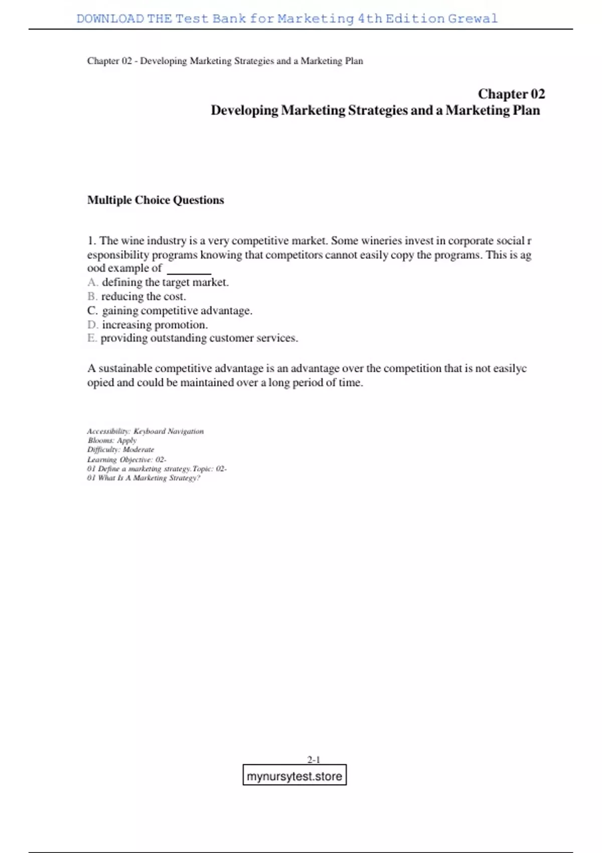 DOWNLOAD THE Test Bank for Marketing 4th Edition Grewal