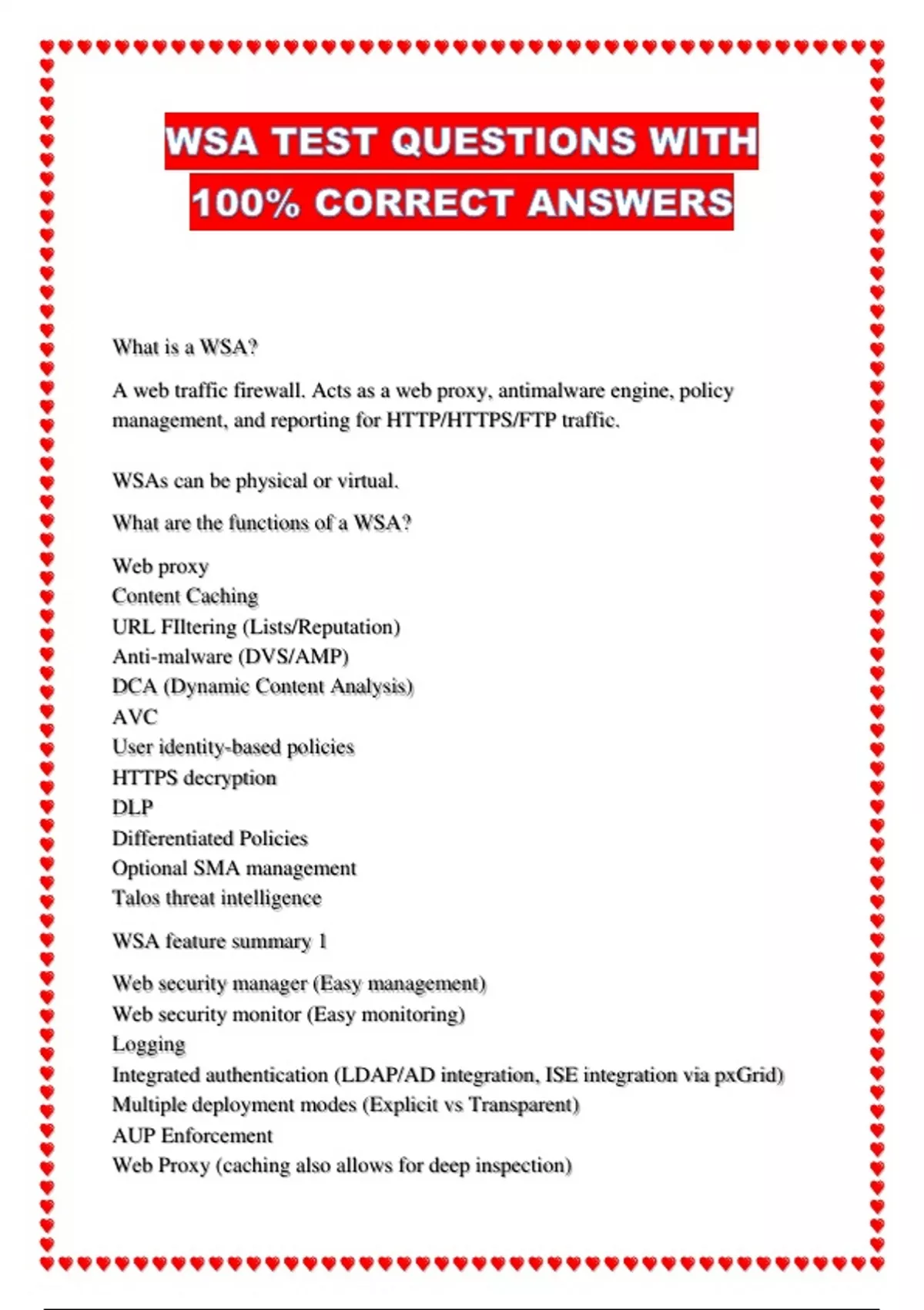 WSA feature summary 1
