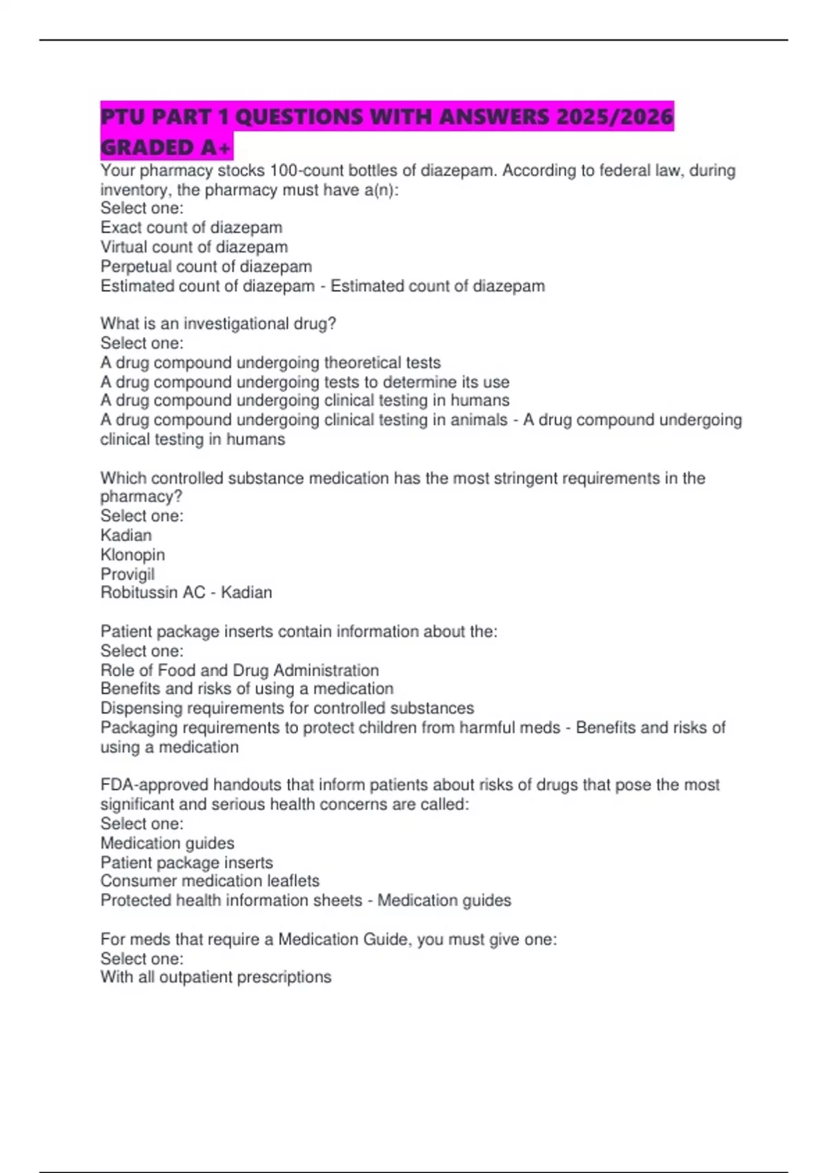 Your pharmacy stocks 100-count bottles of diazepam. According to federal law, during