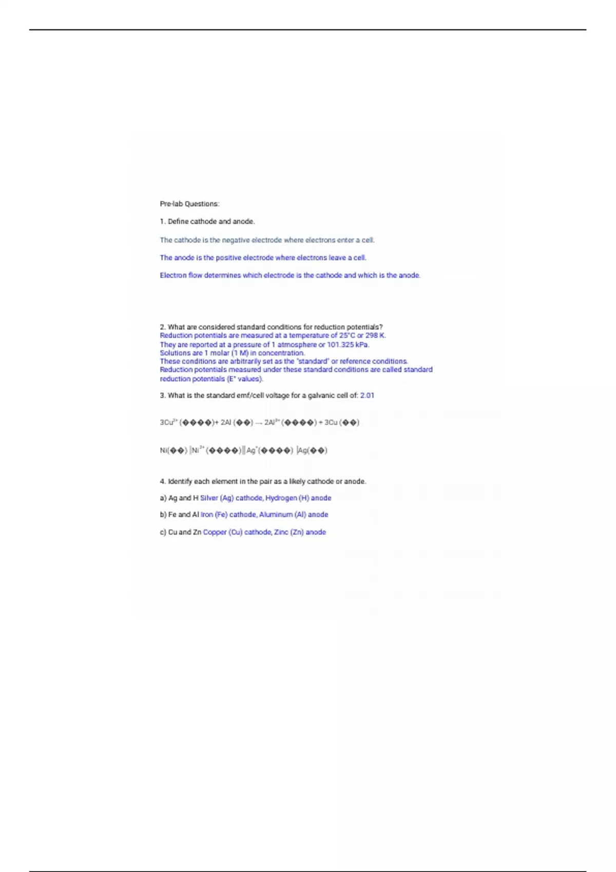 This is a comprehensive and detailed assignment that contains pre lab questions on; electrochemistry. An Essential Study Resource just for YOU!!