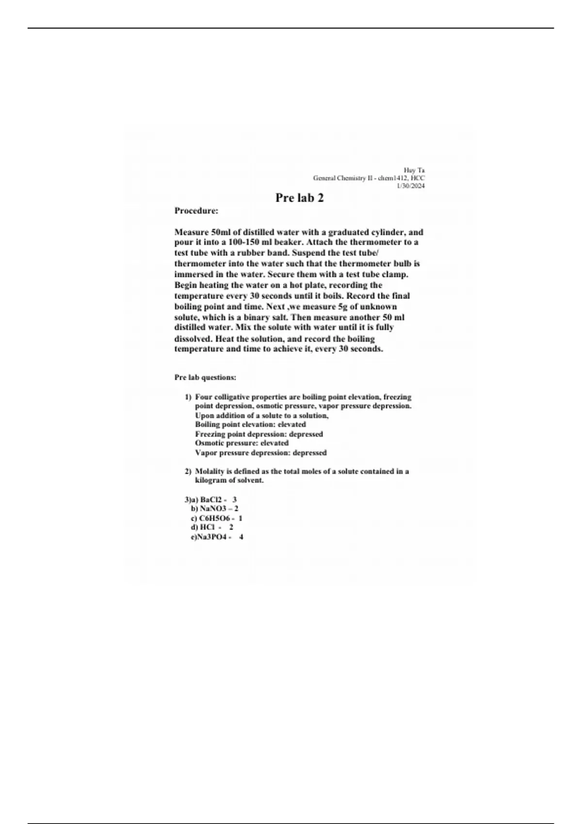CHEM 1412 pre lab 2 questions