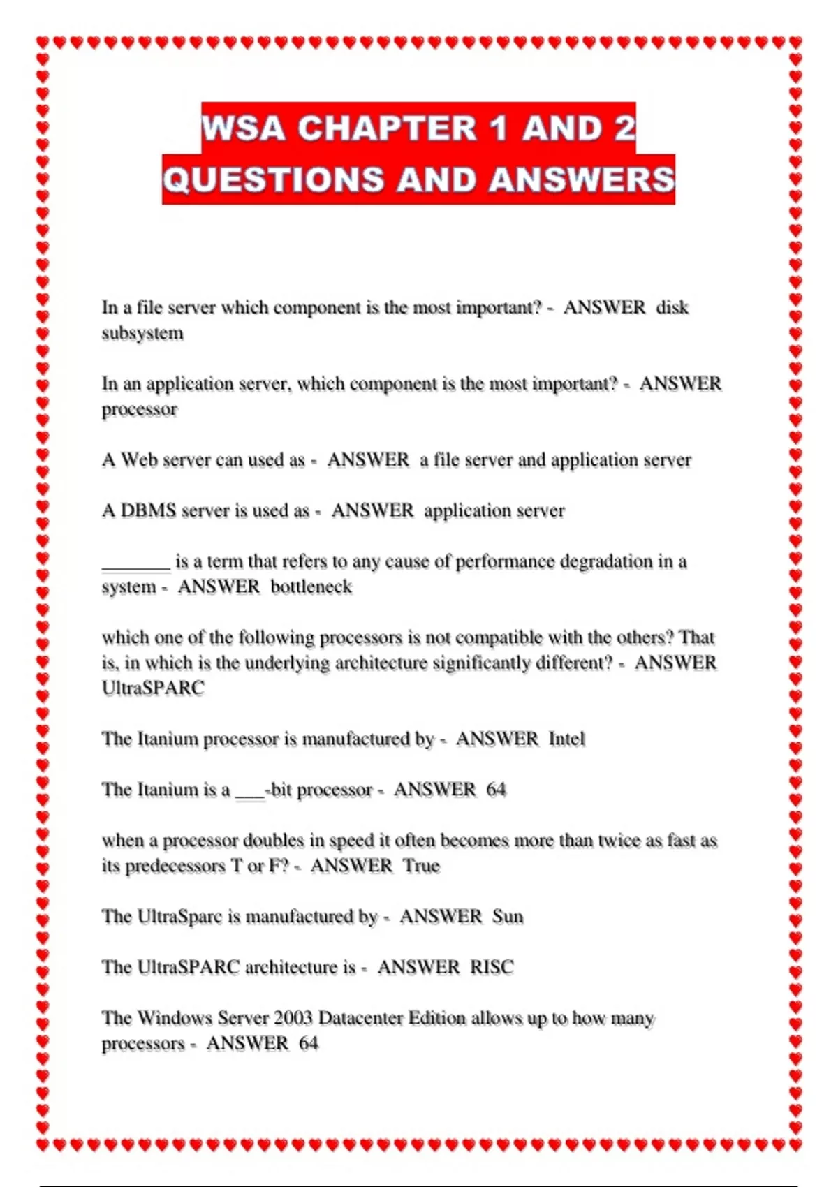 In a file server which component is the most important? - ANSWER disk