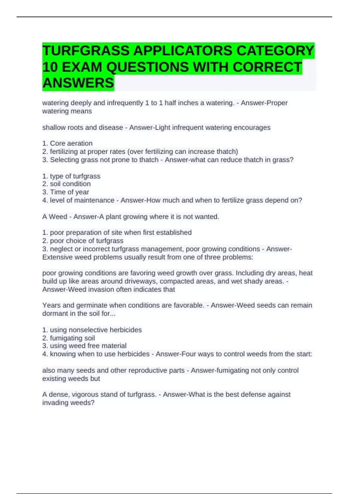 3. neglect or incorrect turfgrass management, poor growing conditions - Answer-