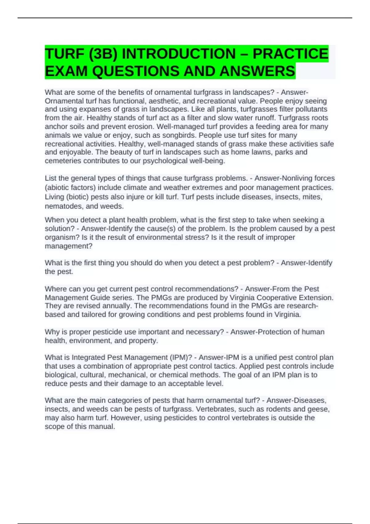 Living (biotic) pests also injure or kill turf. Turf pests include diseases, insects, mites,