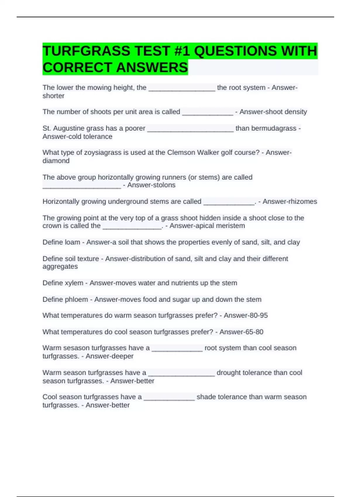 What temperatures do warm season turfgrasses prefer? - Answer-80-95