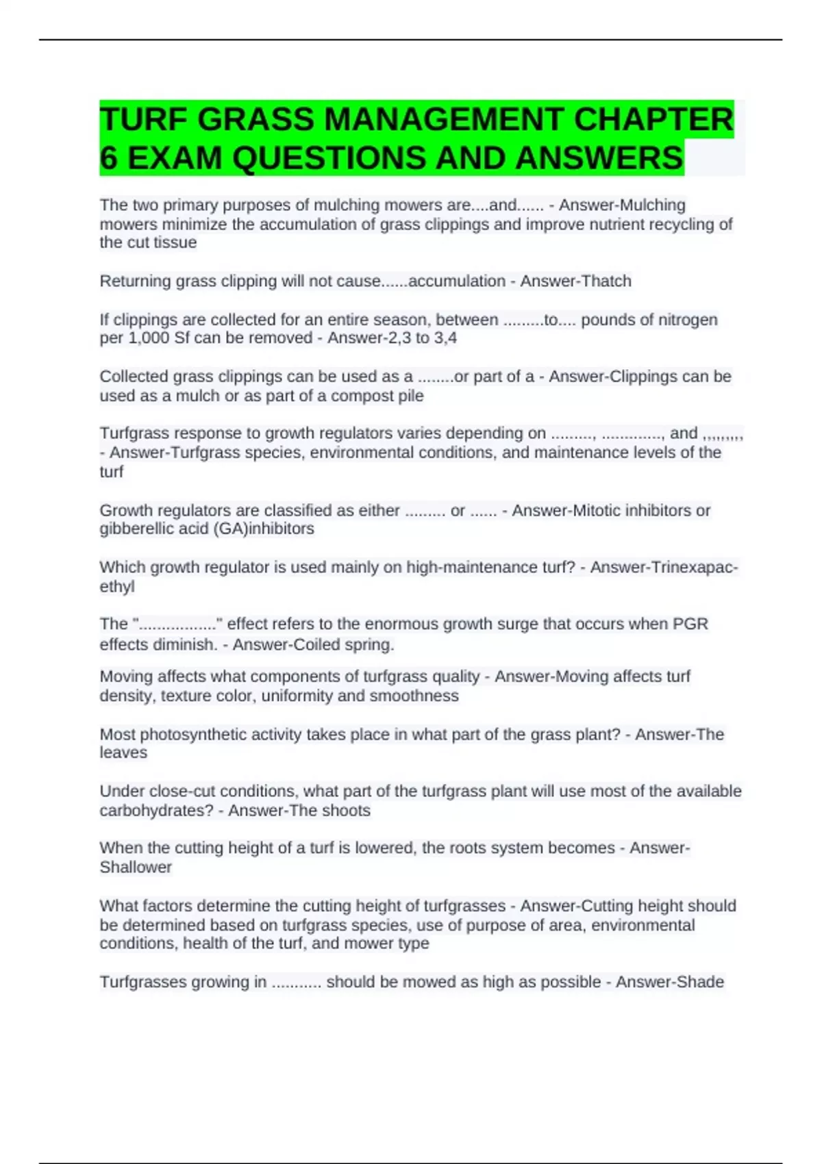 Returning grass clipping will not cause......accumulation - Answer-Thatch