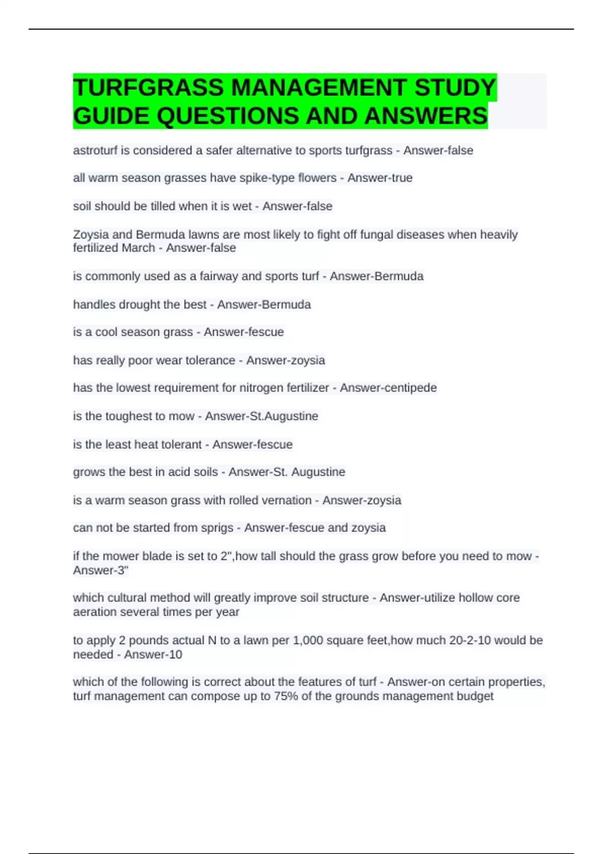 which of the following is correct about the features of turf - Answer-on certain properties,