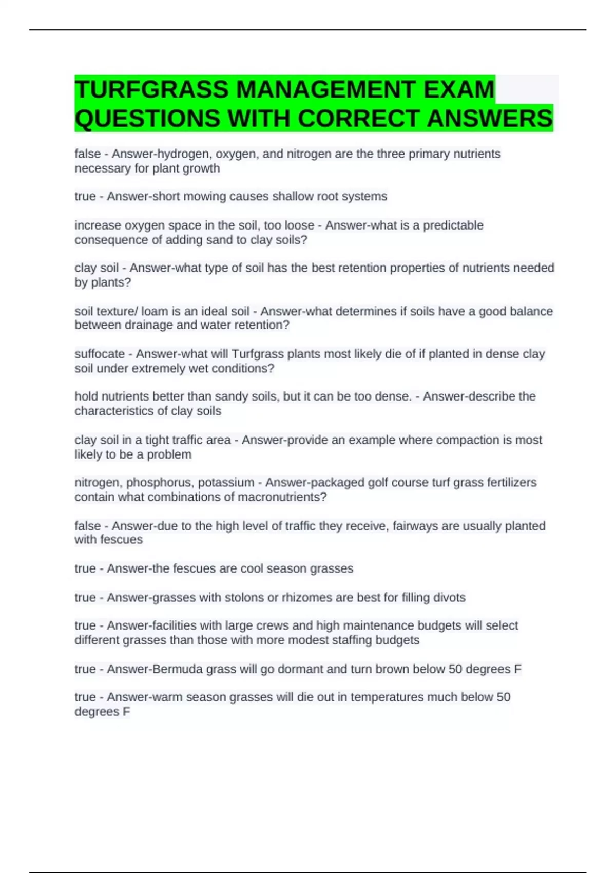 suffocate - Answer-what will Turfgrass plants most likely die of if planted in dense clay