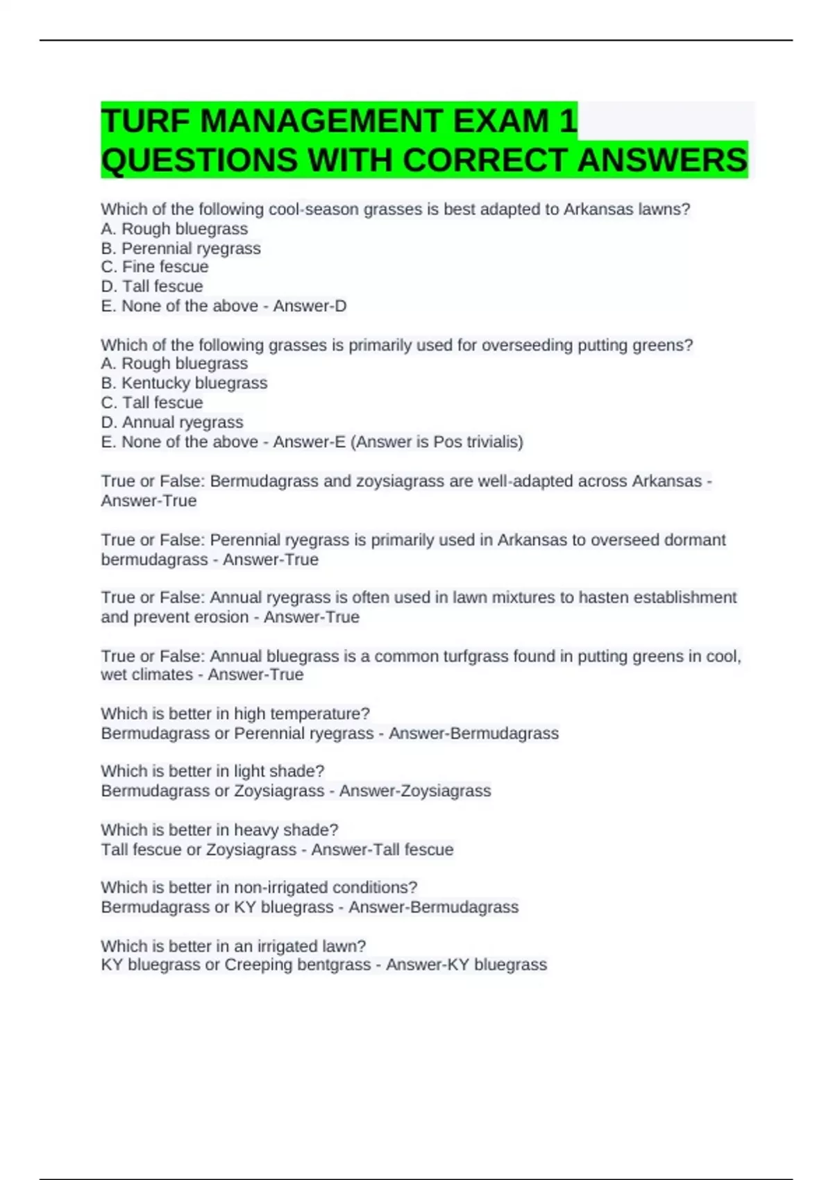 Perennial ryegrass or Tall fescue - Answer-Perennial ryegrass