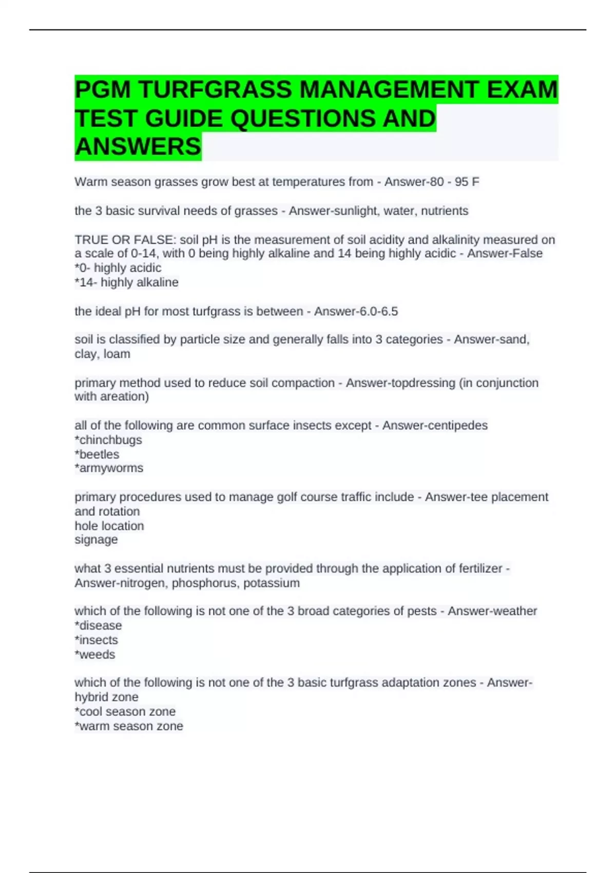 PGM TURFGRASS MANAGEMENT EXAM