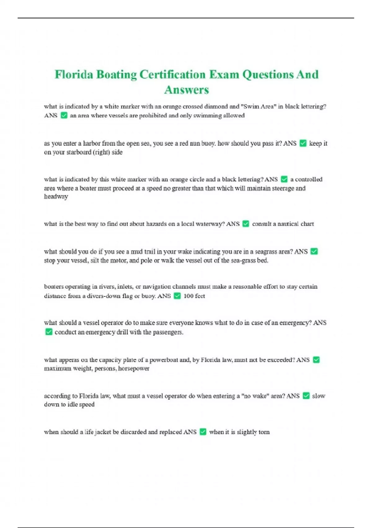 Florida Boating Certification Exam Questions And Answers