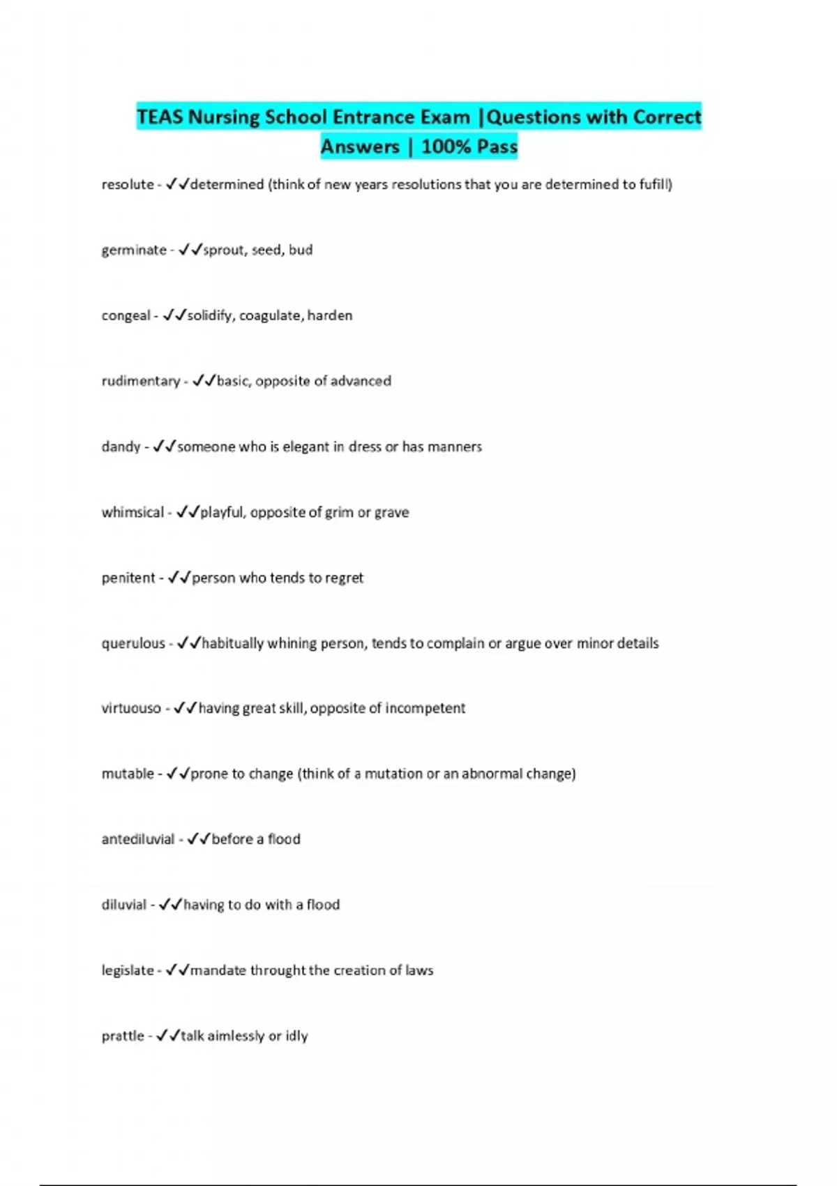 TEAS Nursing School Entrance Exam |Questions with Correct Answers | 100% Pass