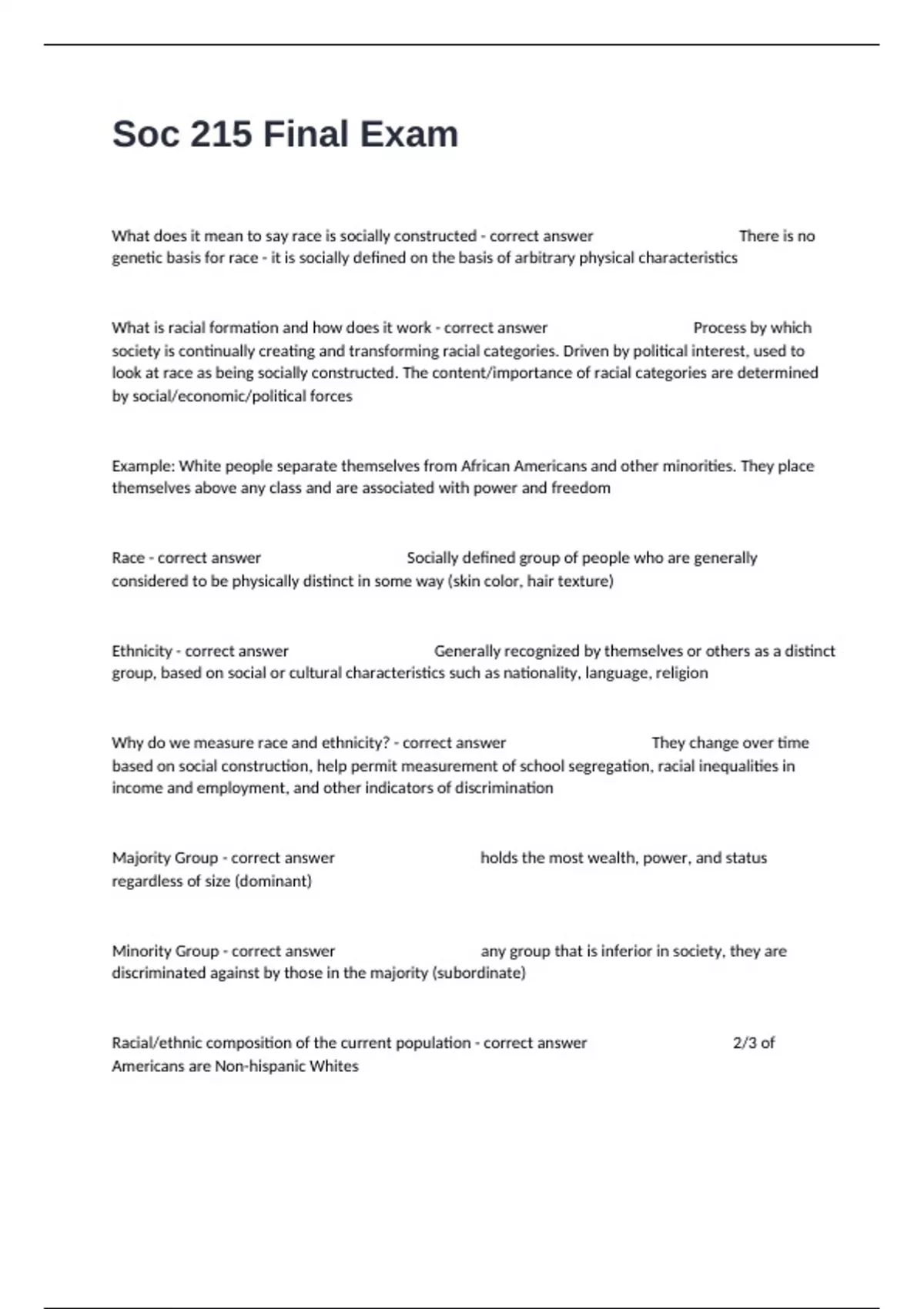 Ethnicity - correct answer Generally recognized by themselves or others as a distinct
