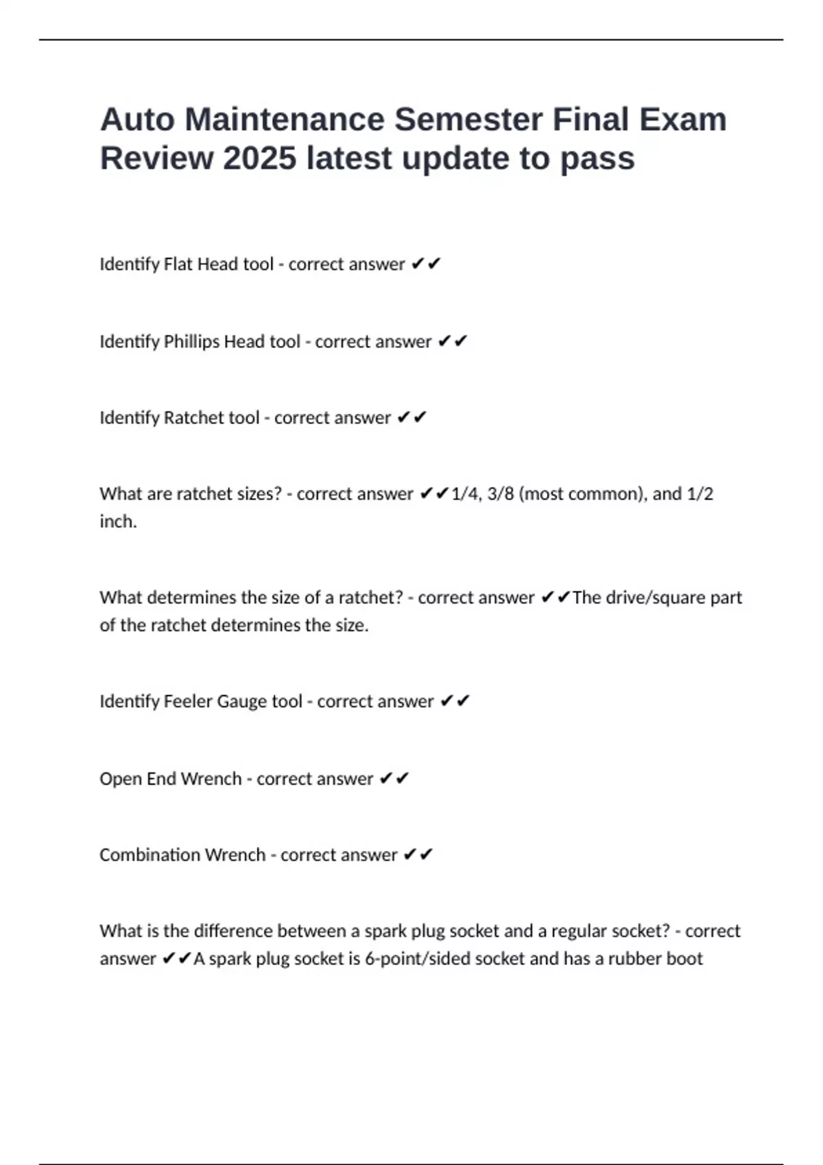 Auto Maintenance Semester Final Exam Review 2025 latest update to pass