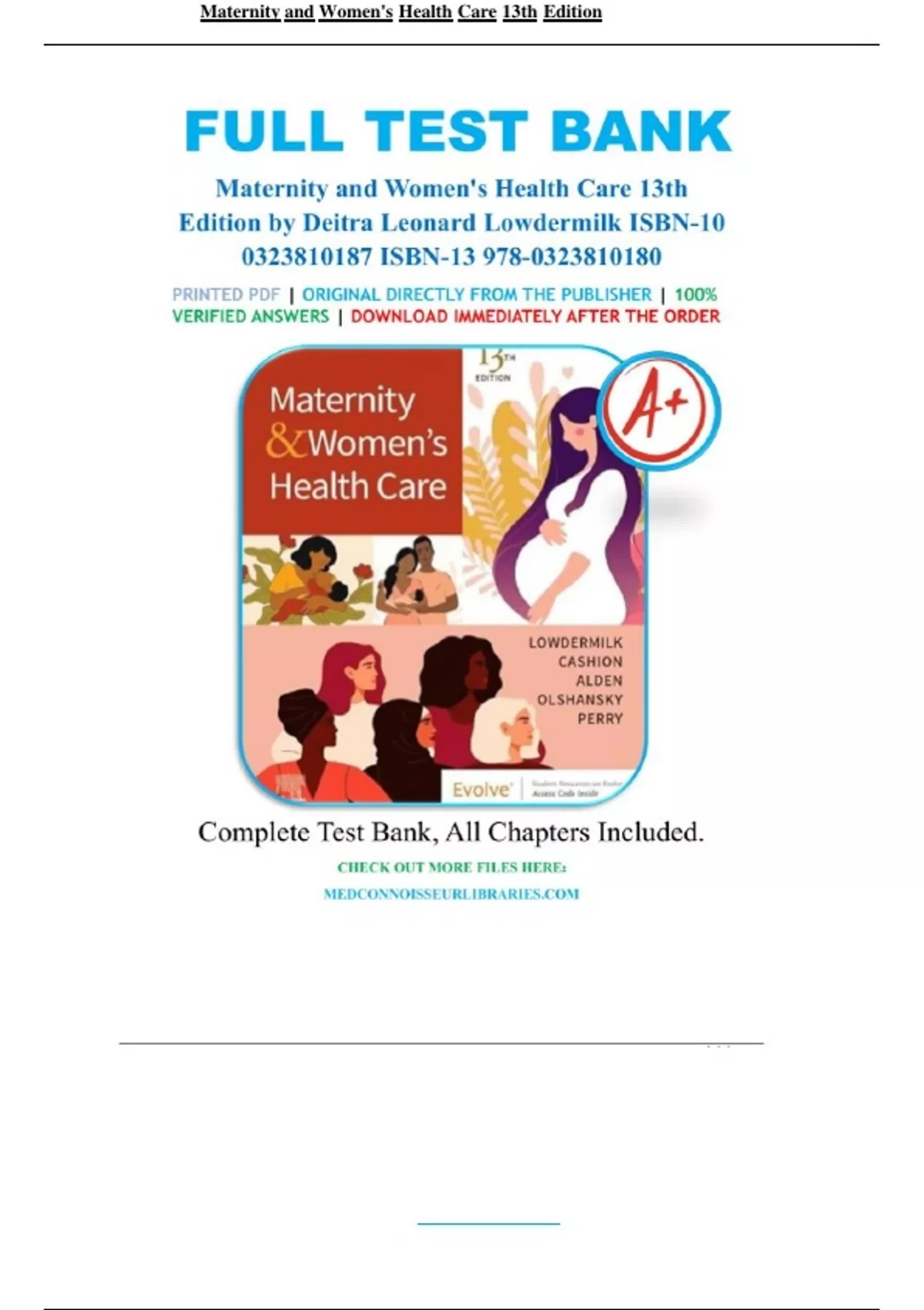MaternitydtanddtWomen's dtHealth dtCare dt13th dtEdition dtLowdermilk Test Chapt dtBank () ()