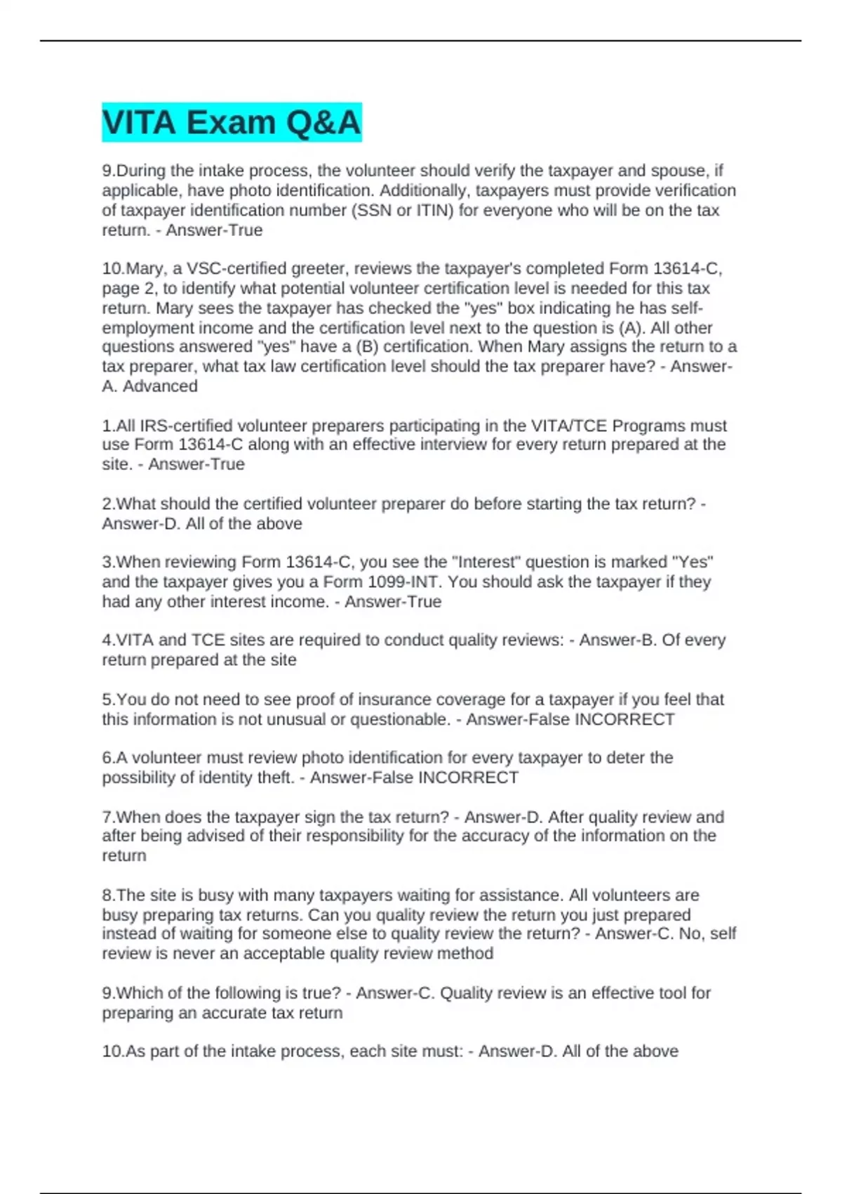 VITA Exam Q&A