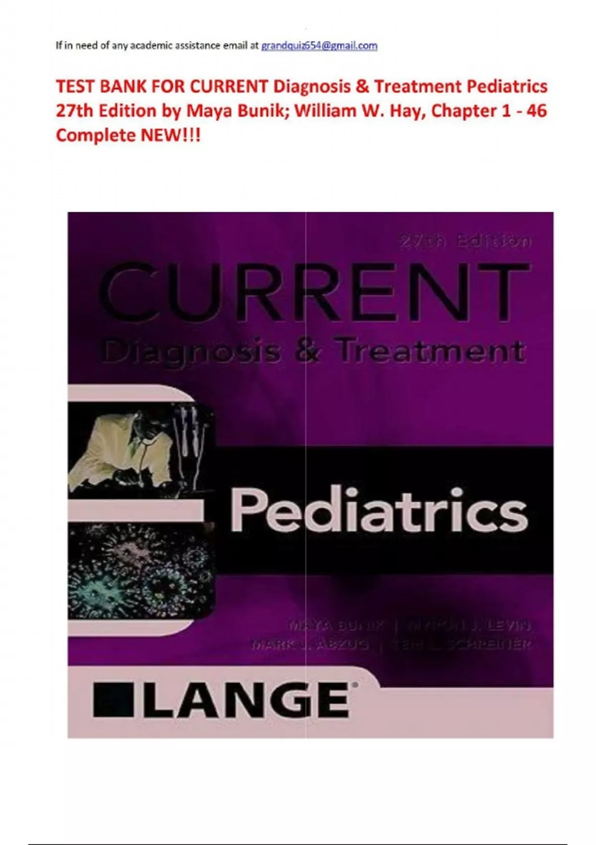 TEST BANK FOR CURRENT Diagnosis & Treatment Pediatrics 27th Edition by Maya Bunik; William W. Hay, Chapter 1 - 46 Complete NEW!!!