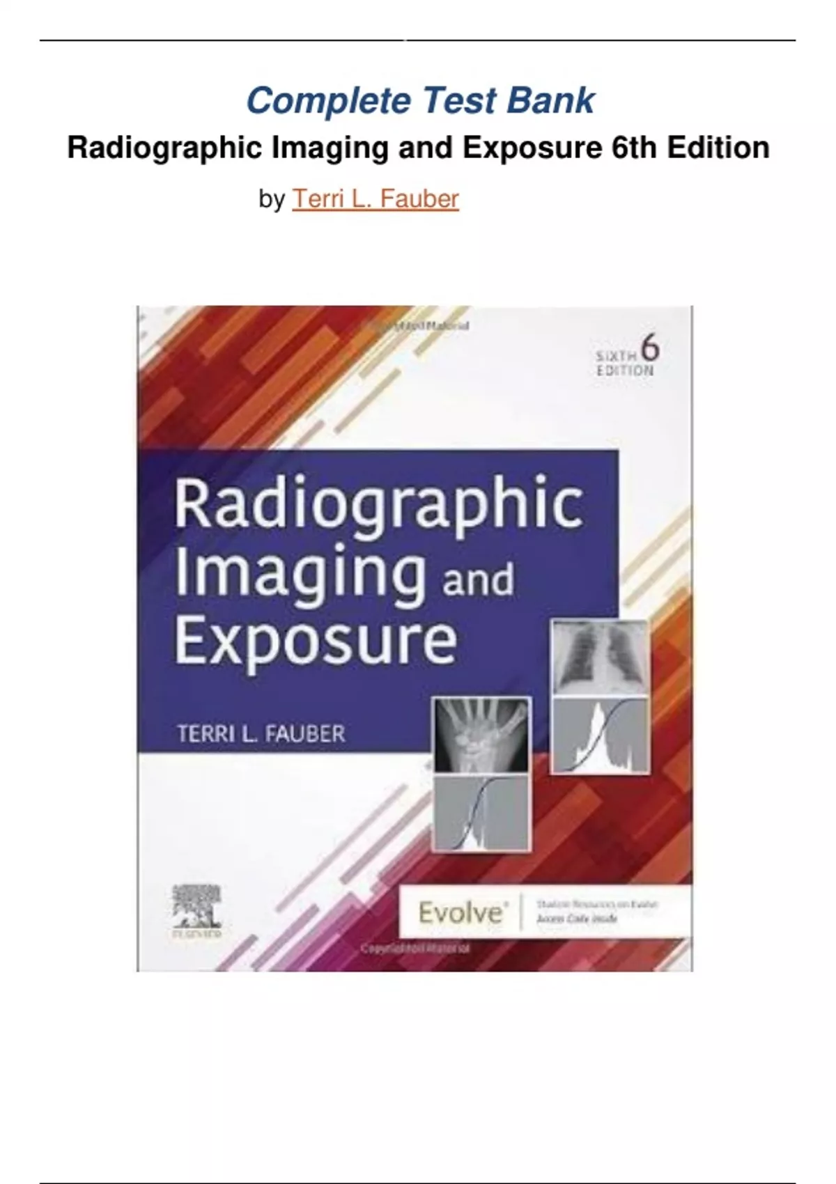Test Bank Radiographic Imaging and Exposure 6th Edition Fauber