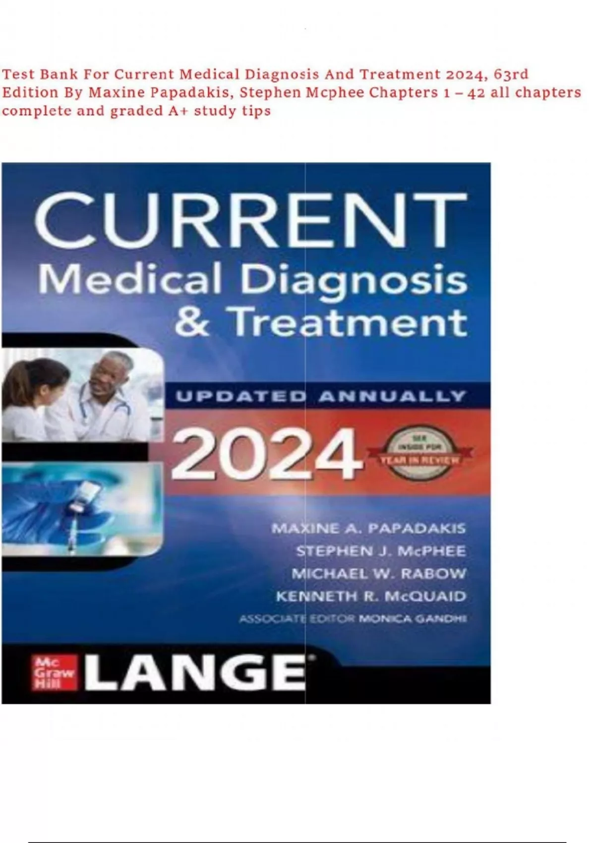Test Bank For Current Medical Diagnosis And Treatment 2024, 63rd Edition By Maxine Papadakis, Stephen Mcphee Chapters 1 – 42 all chapters complete and graded A+ study tips_compressed.pdf