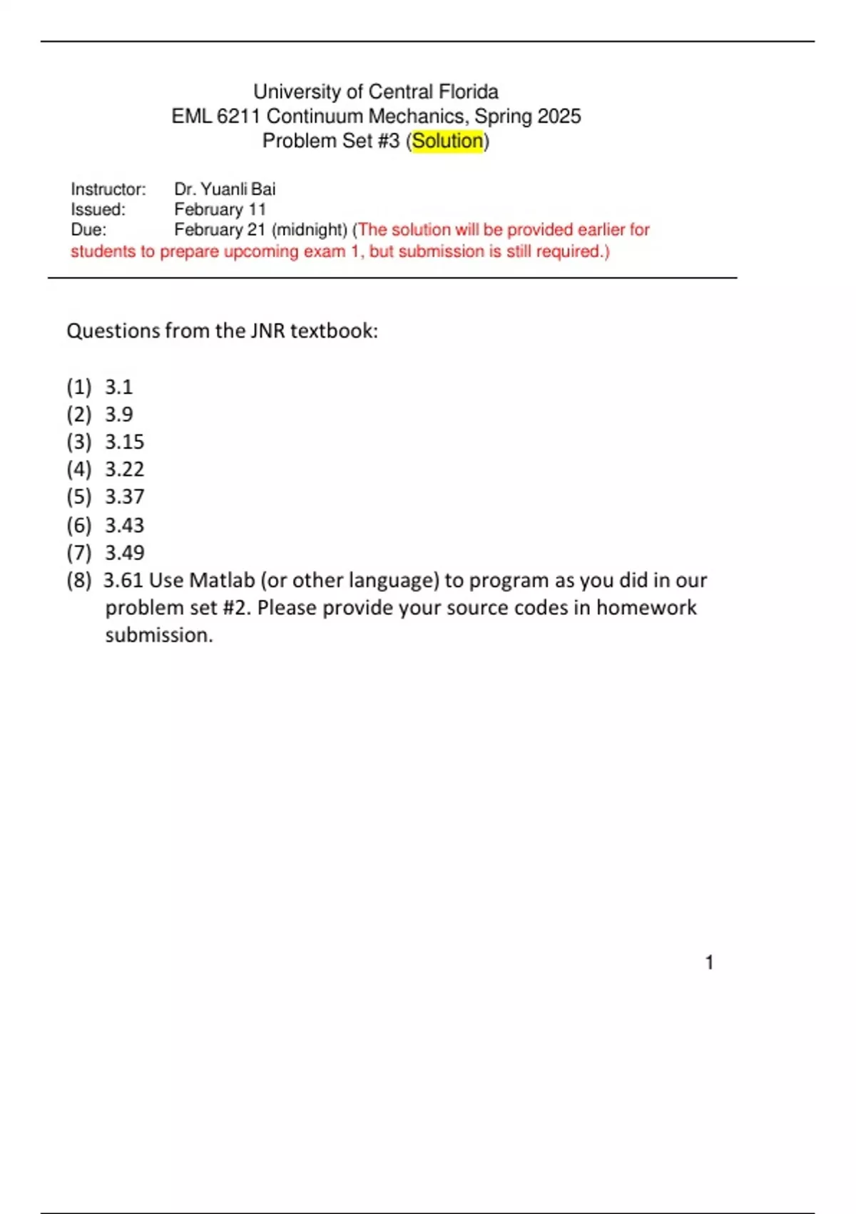 EML 6211 Continuum Mechanics, Spring 2025