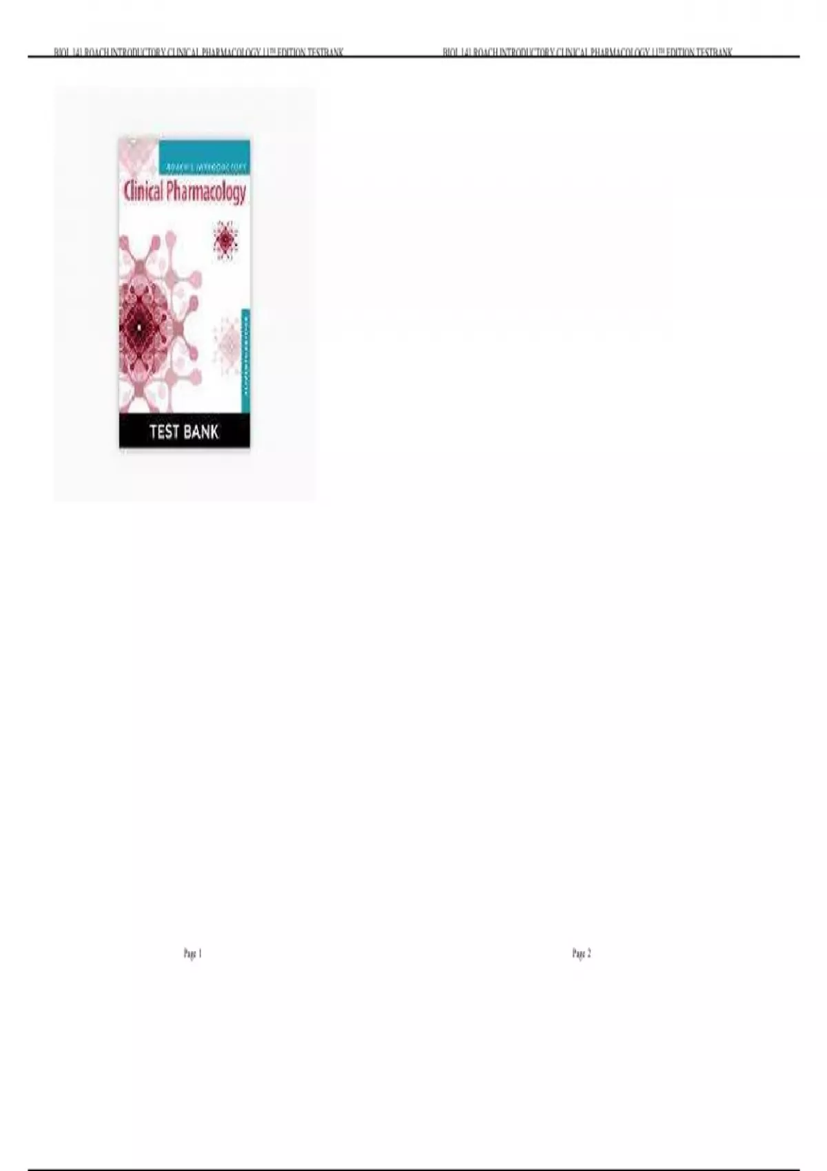 ,BIOL 141 ROACH INTRODUCTORY CLINICAL PHARMACOLOGY 11TH EDITION TESTBANK BIOL 141 ROACH INTRODUCTORY CLINICAL PHARMACOLOGY 11TH EDITION TESTBANK