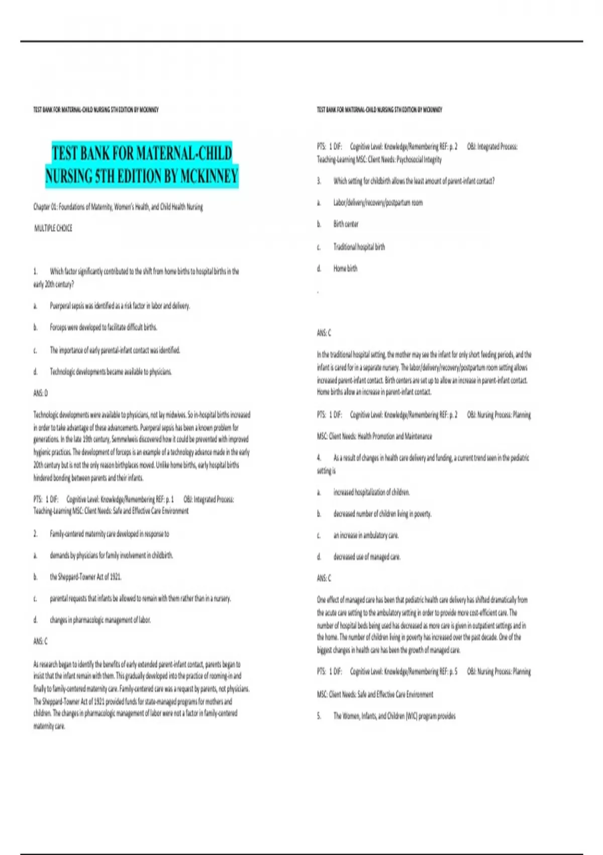, TEST BANK FOR MATERNAL-CHILD NURSING 5TH EDITION BY MCKINNEY TEST BANK FOR MATERNAL-CHILD NURSING 5TH EDITION BY MCKINNEY