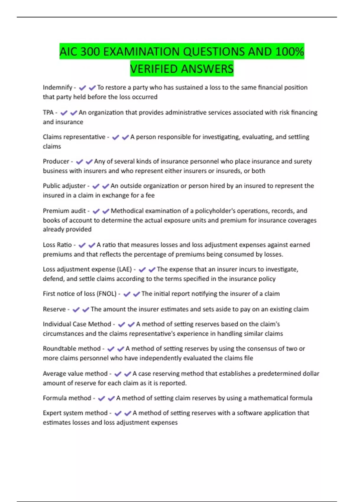 AIC 300 EXAMINATION QUESTIONS AND 100%