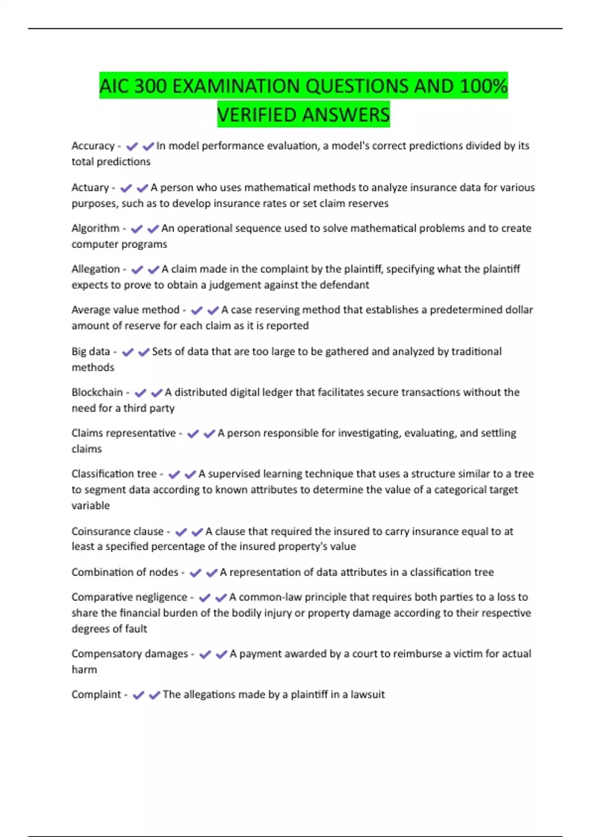 AIC 300 prep ASSESSMENT GUIDE WITH VERIFIED ANSWERS (the latest quizzes)|A+ graded| guaranteed pass