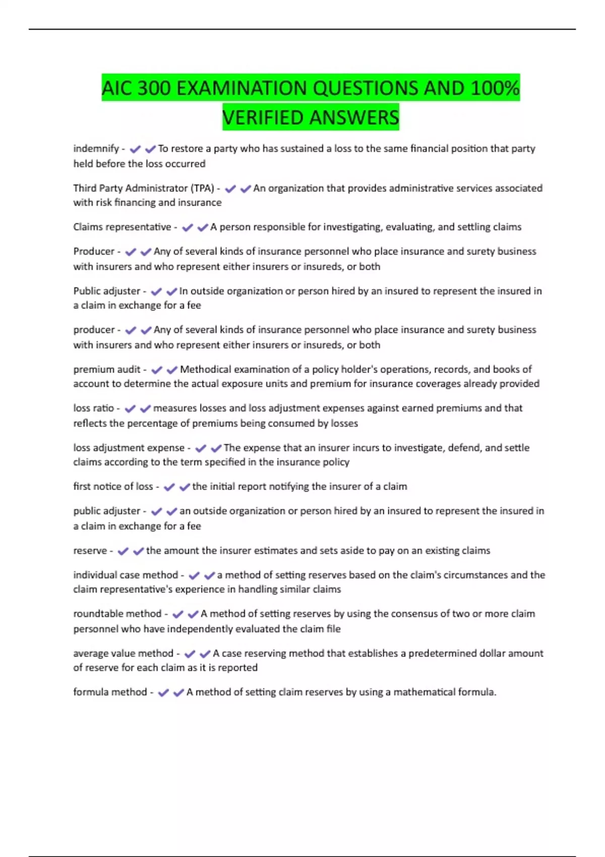 AIC 300 Complete Review Guide 2025 | Pass First Try | Verified Test Bank