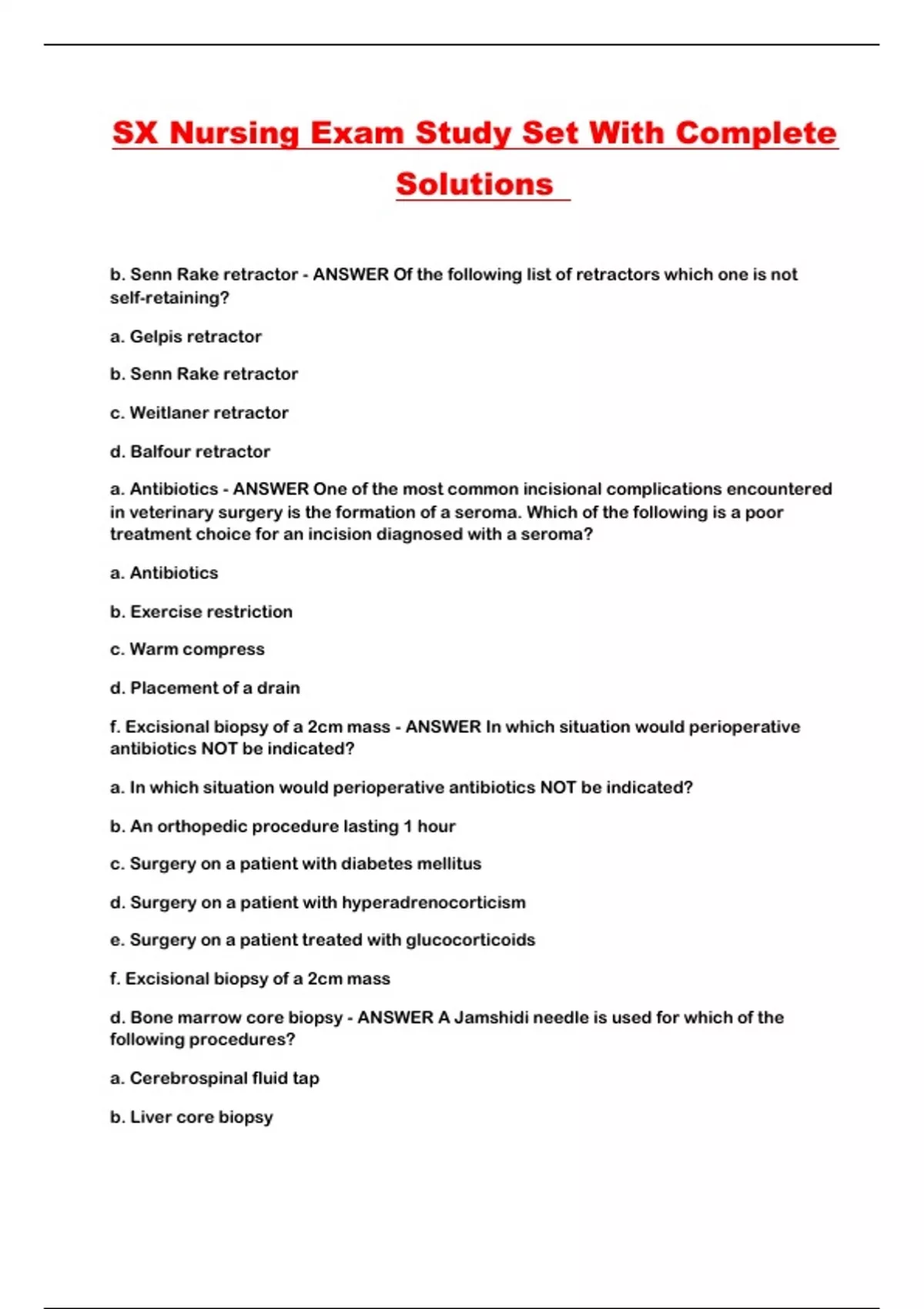 SX Nursing Exam Study Set With Complete Solutions ...