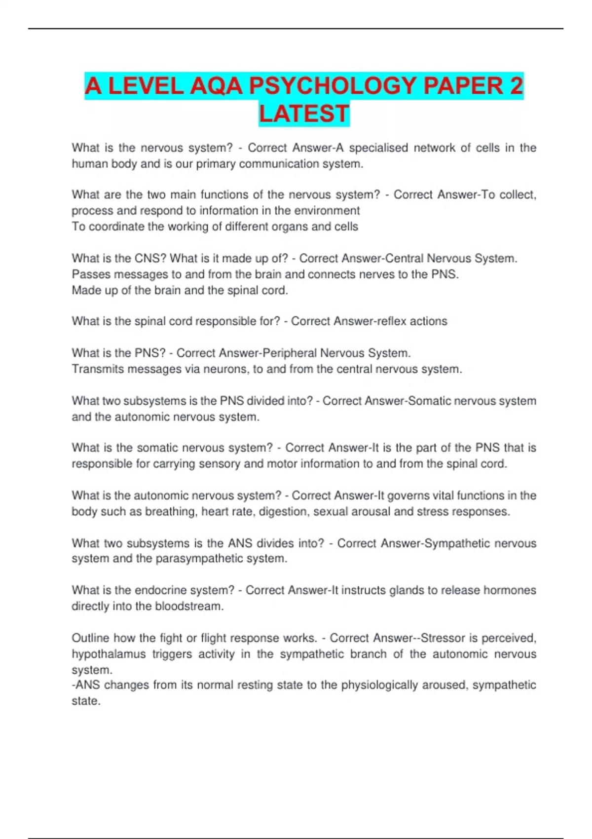 A LEVEL AQA PSYCHOLOGY PAPER 2